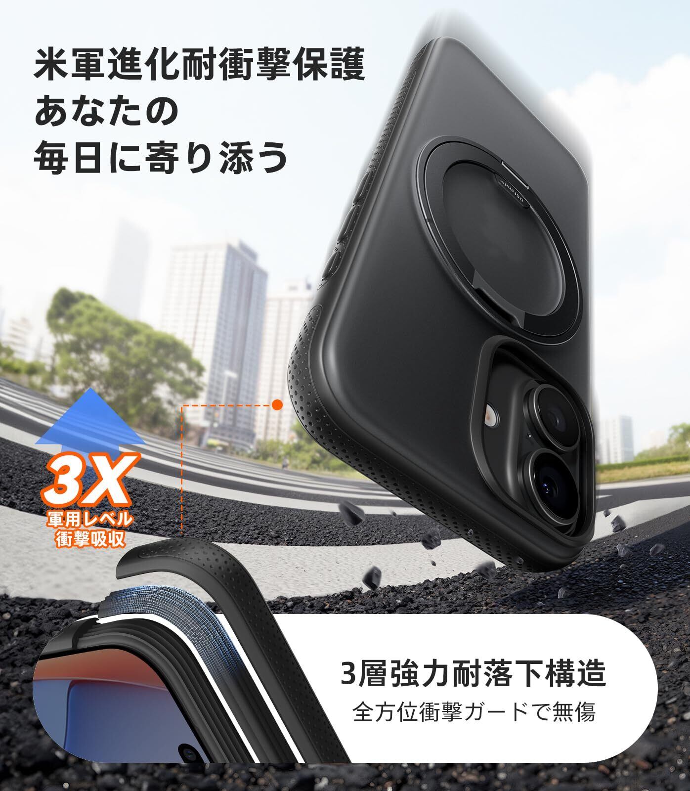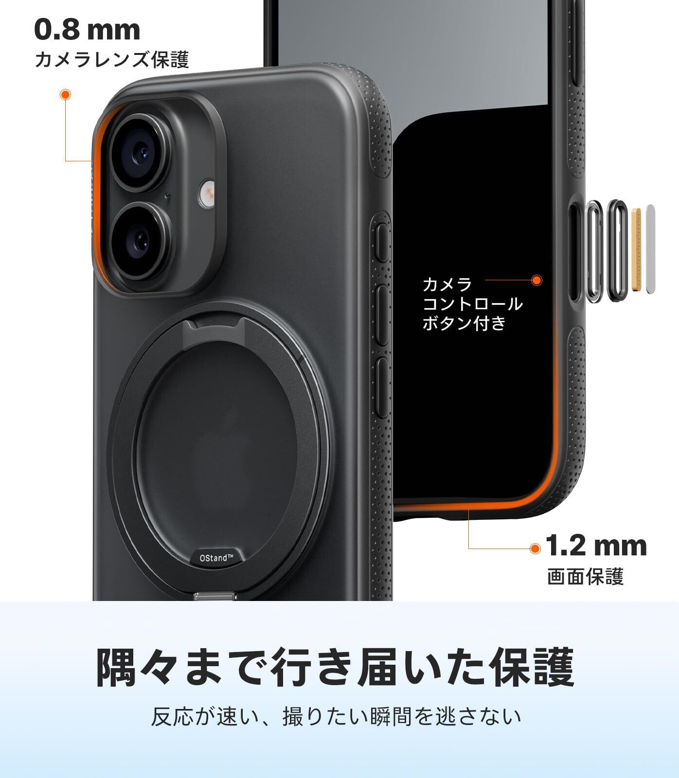 TORRAS iPhone 17 用ケース リング Ostand O3 Fitness MagSafe対応 米軍MIL規格耐衝撃 スタンド 指紋防止 黄変防止 カメラコントロールボタン付き ストラップホール 半透明 撮影/動画視聴/日常の記録 手のひらサイズの映像革命 ブラック
