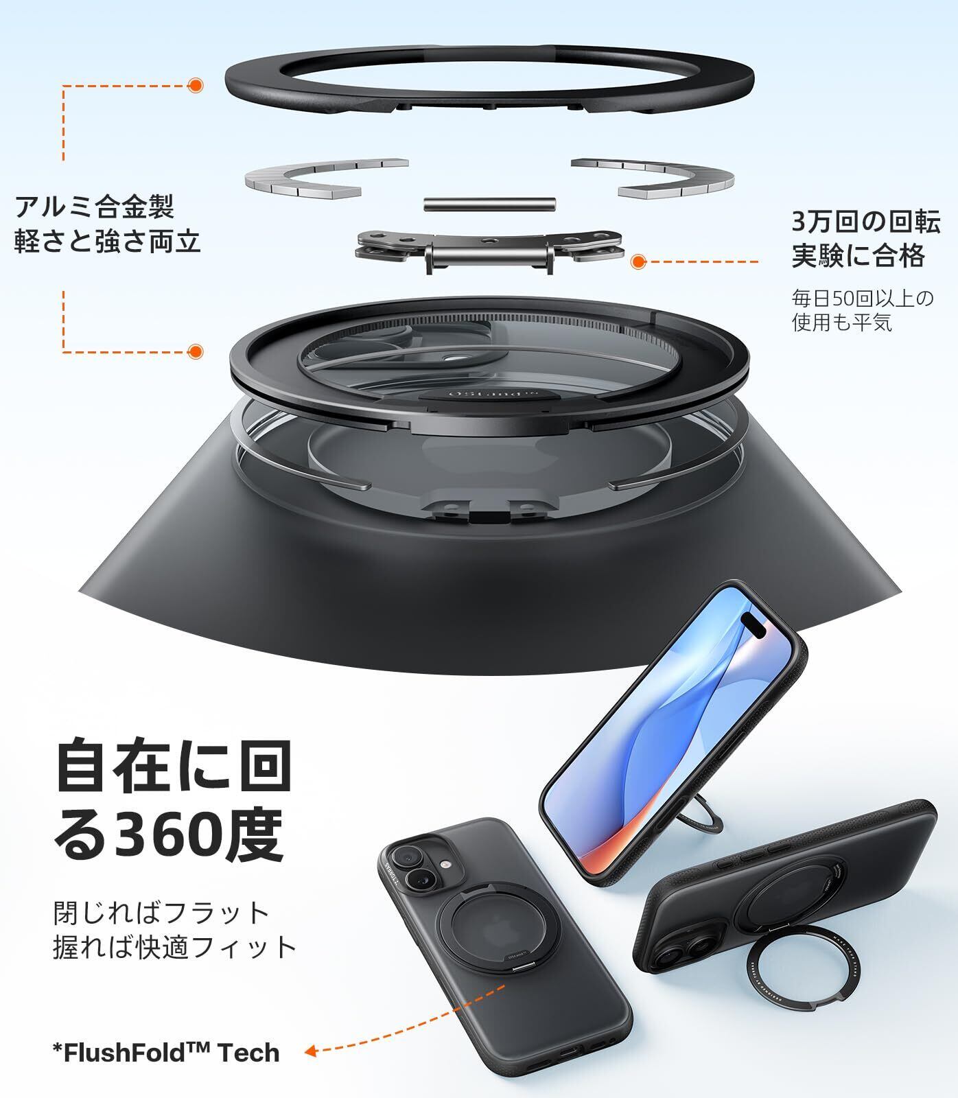 【新升級!!全方位 180° 展開スタンド】180° 全開可能にアップグレードしたスタンドを搭載,従来の展開角度制限を突破。スマホ落下時の衝撃や不意の押圧によるスタンド損傷の心配を完全解消し,日常使用での意外状況にも対応し,長期間安定した機能を保持できるため,安心して使用できます。対応機種:For iPhone 17 ケース