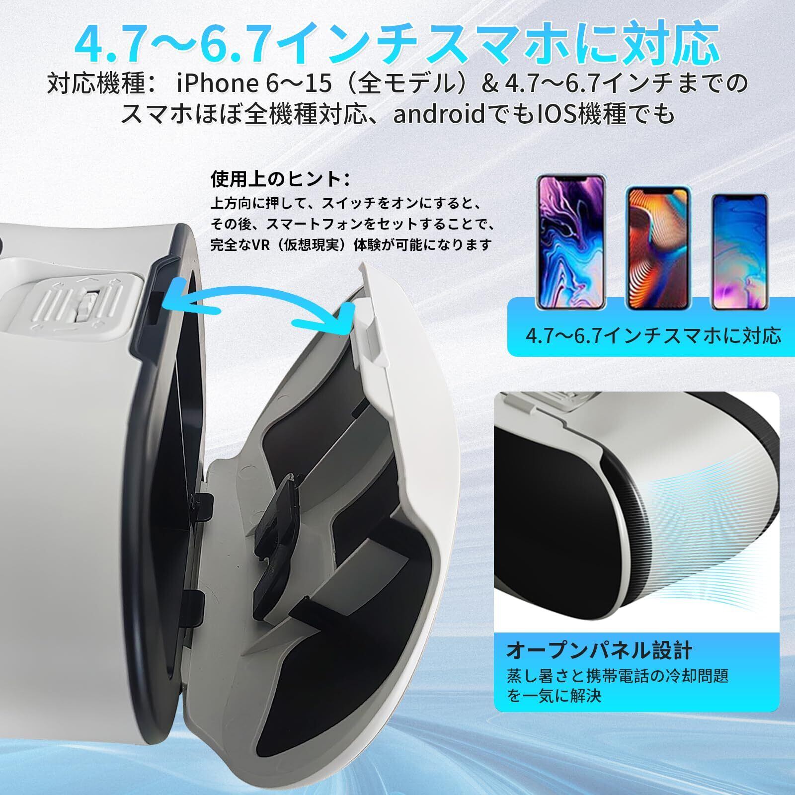 【新着商品】VRゴーグル VRヘッドセット VRヘッドマウントディスプレイ 3Dパノラマ体験 1080P 超広角120°視野角 vrゴーグル スマホ用 非球面光学レンズ ピントや目幅調整可 装着感良い vr 通気性 軽量 放熱性良い 4.7~6.7 iPhone&androidなどのスマホ対応 家で楽しめる 日本語説明書付