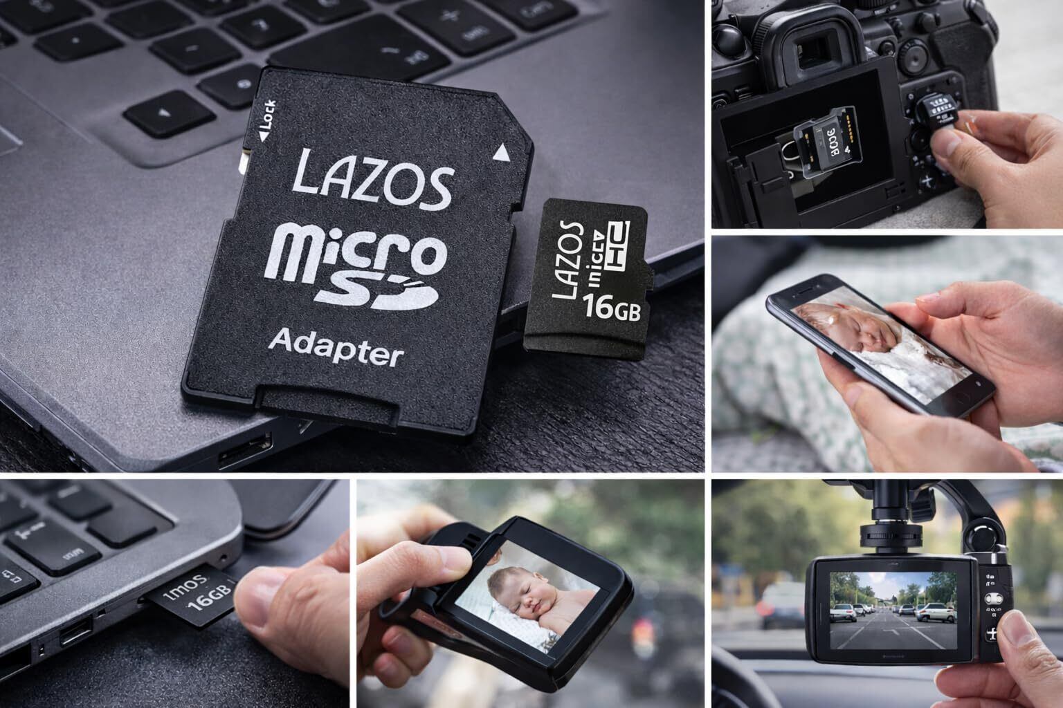 LAZOS microSDHCメモリーカード 16GB Class10は、写真・動画・データ保存に適したマイクロSDカードです。 SDカード変換アダプター付きのため、microSD対応機器だけでなく、SDカードスロット搭載機器でも使用可能。 デジタルカメラ、スマートフォン、ドライブレコーダー、パソコンなど、さまざまな機器で幅広く活用できます。 日常使いの記録用やデータのバックアップ用途として、扱いやすい容量のメモリーカードです。