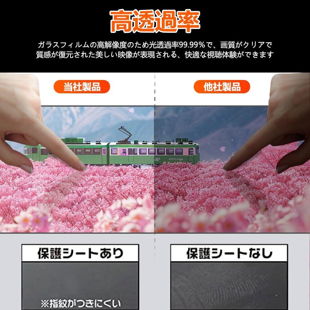 【極薄&高透過率】:わずか0.33mmの厚さで、スクリーンとガラスフィルムがよく一体化し、光の透過率が99%で、画面に最高レベルの保護を施しながら、保護フィルム自体の存在感を感じさせません、絶妙な画面感を実現します。