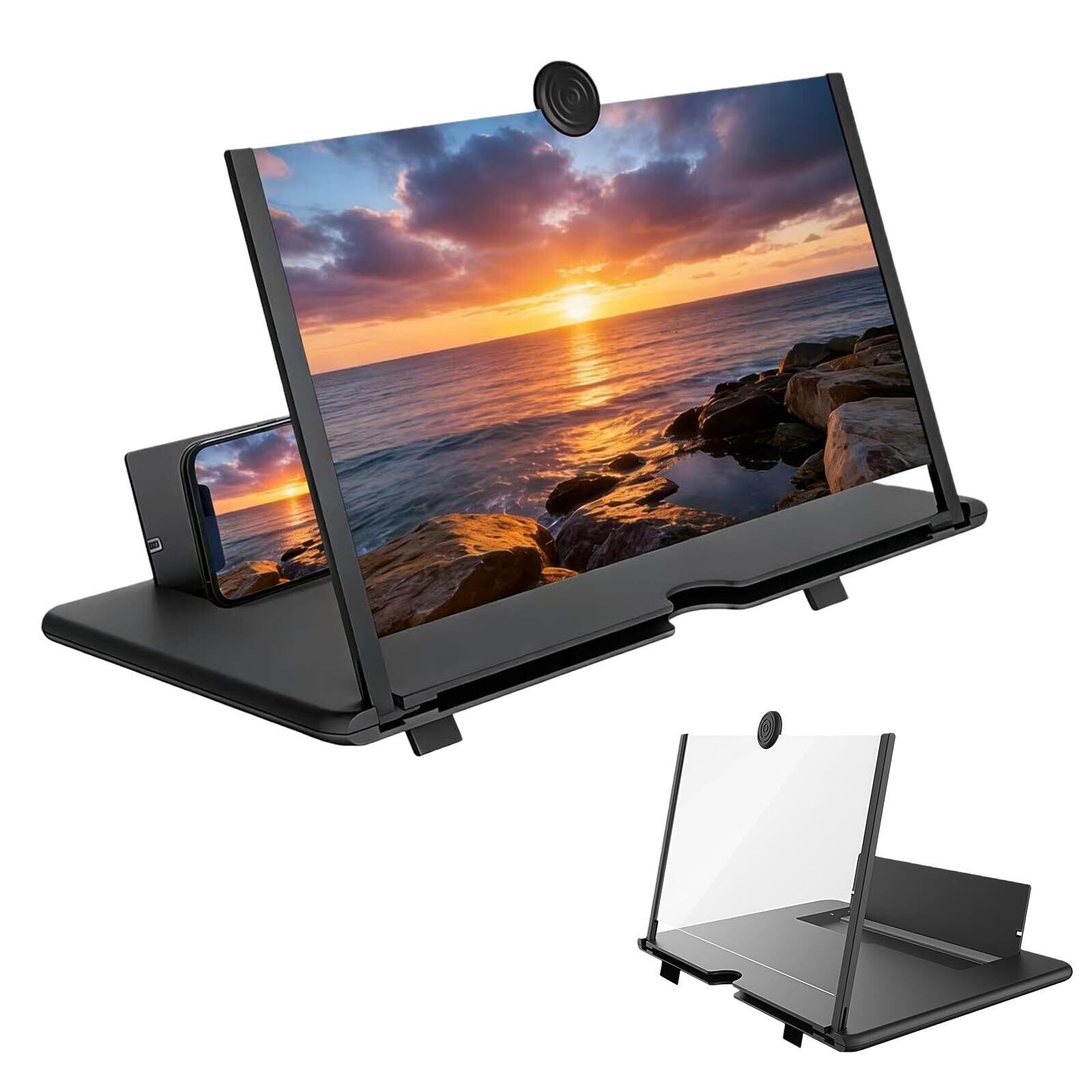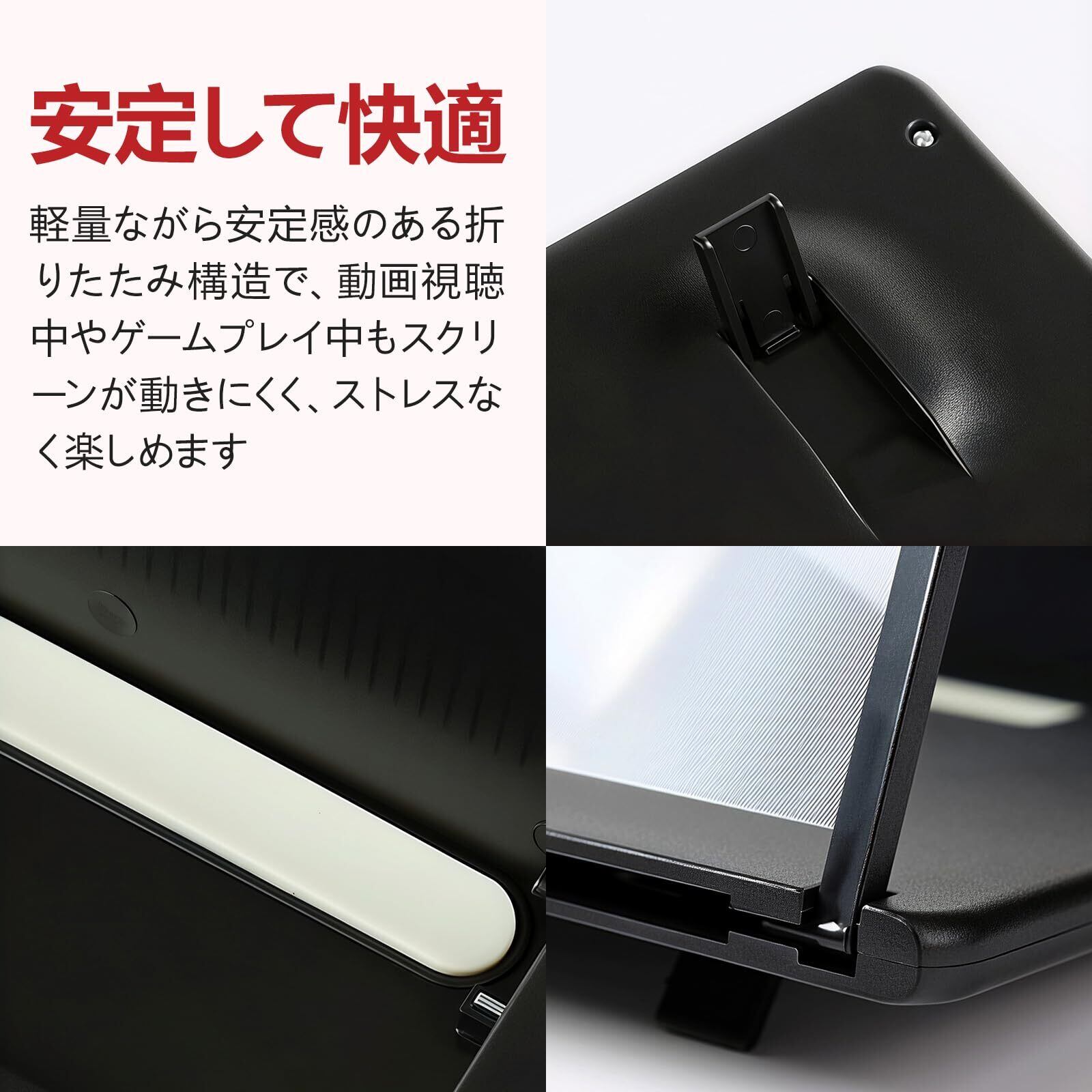 【在庫処分】スクリーンアンプ スマホ拡大鏡 スクリーン拡大器 折りたたみ可能 大画面フレームレス 目に優しい (ブラック, 12インチ)