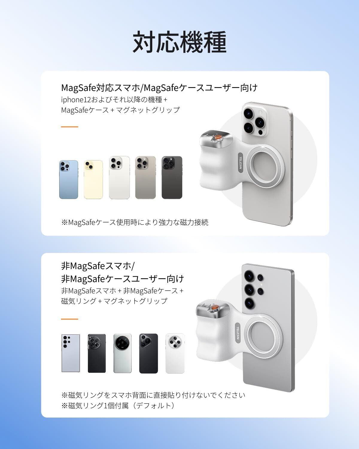 【新着商品】TELESIN マグネット スマホ カメラグリップ iPhone カメラグリップ 自撮りグリップ 撮影用 iPhoneグリップ ズーム機能 フロ・リアレンズ切替 両面磁石 マグセーフ グリップ ワイヤレスシャッター付き 1/4"ネジ 自撮り棒 三脚 軽量エルゴノミックデザイン 動画撮影/自撮り/写真/Vlog/ライブ/Tik Tok iPhone/Androidに対応