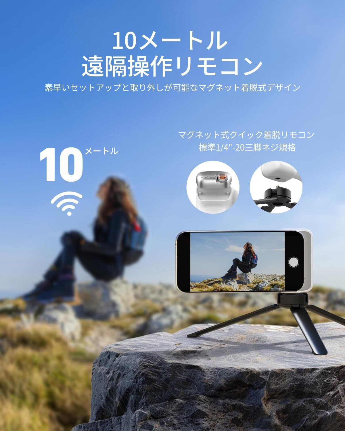 【アップグレード版 充電式&分離式ワイヤレスリモコン】このスマホカメラグリップは、アップグレードされた着脱式10mワイヤレスリモコンを装備。iOSとAndroidに対応し、スマートフォンのBluetooth接続とカメラアプリにシームレスに連携。アプリのダウンロード不要で簡単接続。