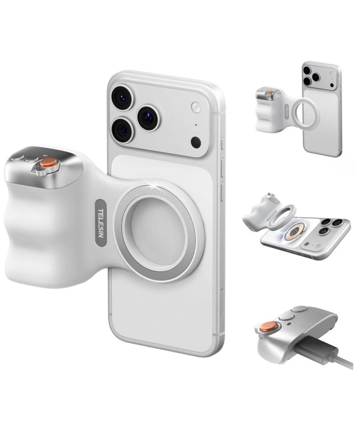 TELESIN マグネット スマホ カメラグリップ iPhone カメラグリップ 自撮りグリップ 撮影用 iPhoneグリップ ズーム機能 フロ・リアレンズ切替 両面磁石 マグセーフ グリップ ワイヤレスシャッター付き 1/4"ネジ 自撮り棒 三脚 軽量エルゴノミックデザイン 動画撮影/自撮り/写真/Vlog/ライブ/Tik Tok iPhone/Androidに対応