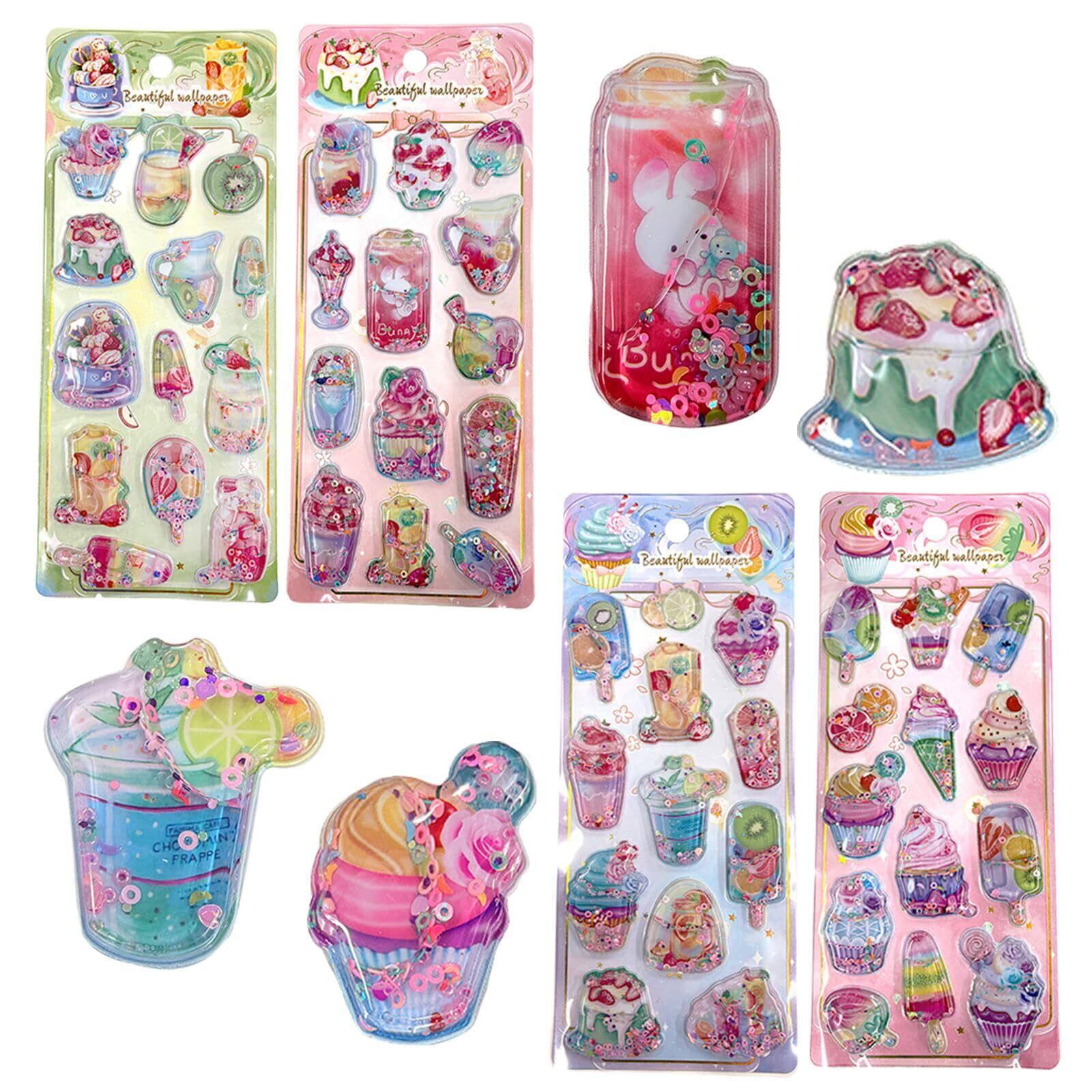 【人気商品】INSで話題!4枚セット にくきゅう キラキラ ぷにぷに 貼り直し可能 アニマル 立体3D ぷっくり かわいい 手帳・日記・スマホデコ DIY 手芸 文房具 子供向け 小学生 女の子 男の子 ごほうび プレゼント (水入りシール01)