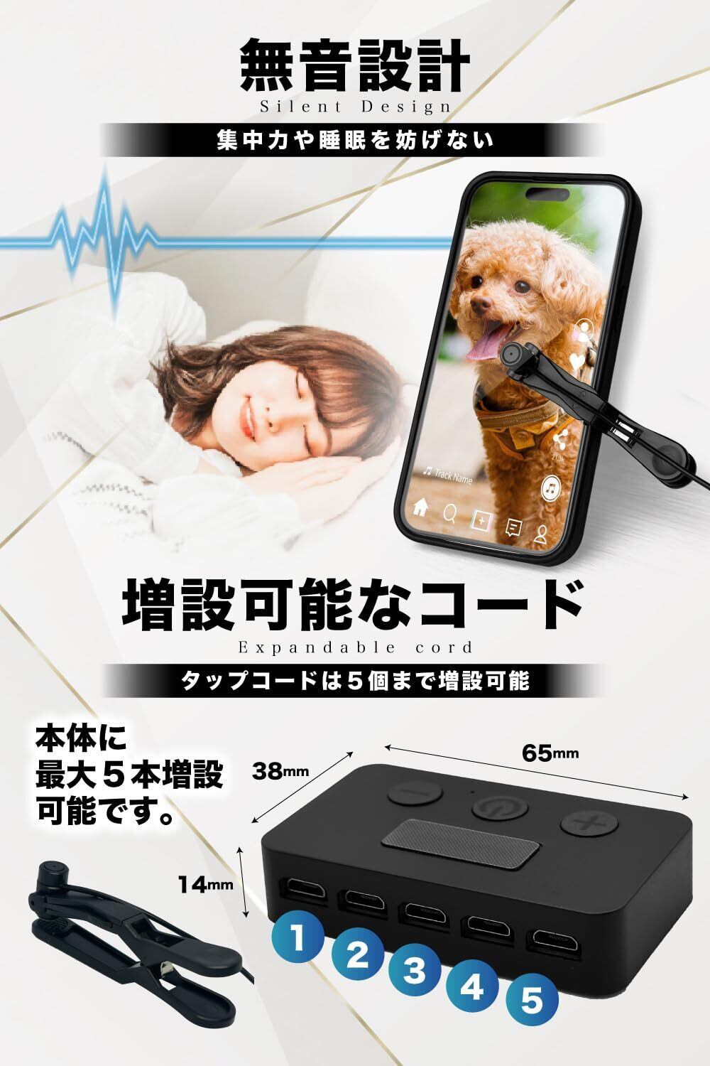 タップ音は完全無音となっているため、就寝中もストレスなくご利用が可能です。