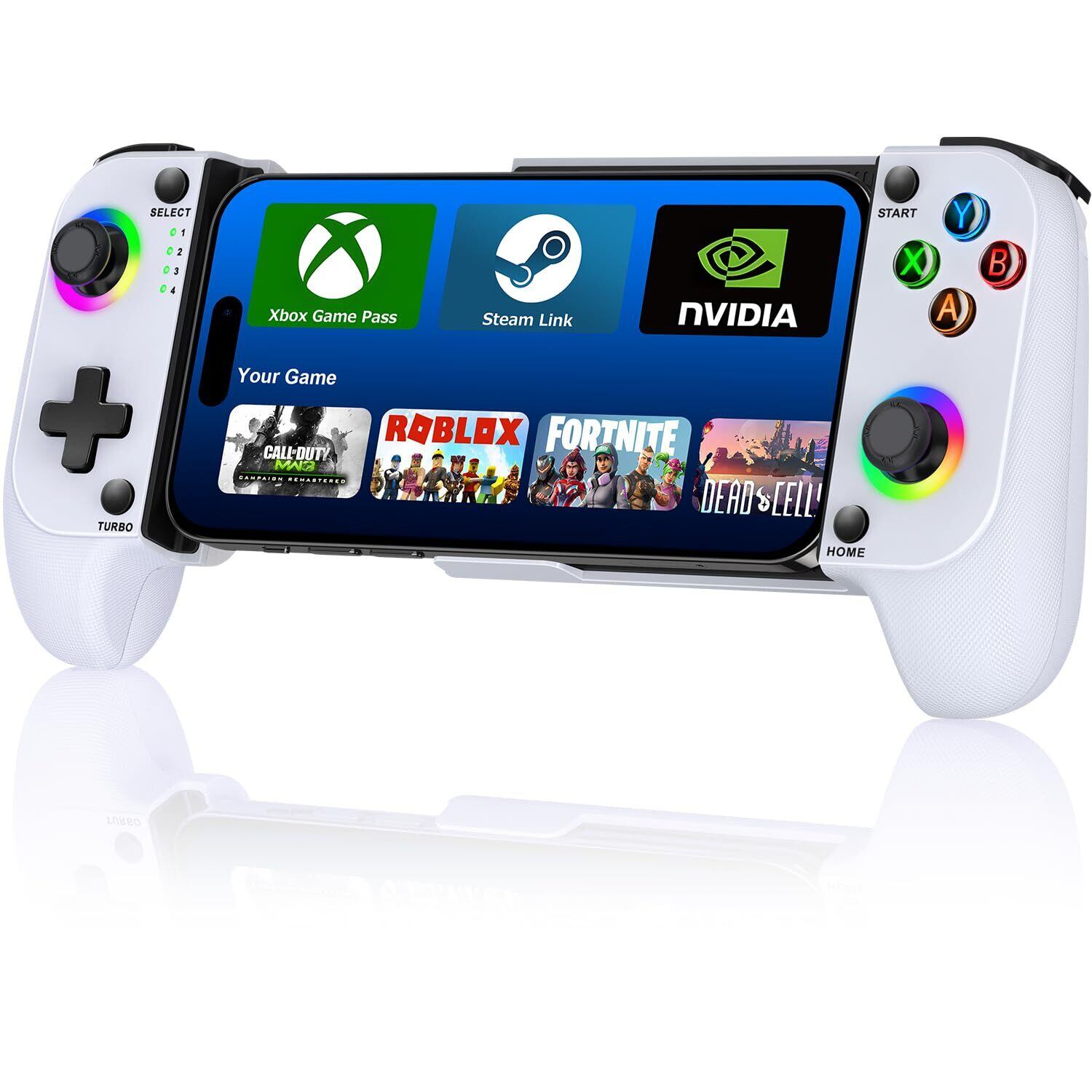 【在庫処分】スマホ コントローラー ワイヤレス接続 IOS/Android両用 モバイルゲームコントローラー 伸縮型 PS Remote Play/Xbox Cloud/Steam Link/GeForce Nowゲームなど対応 低遅延 600mAhバッテリー RGBライト白