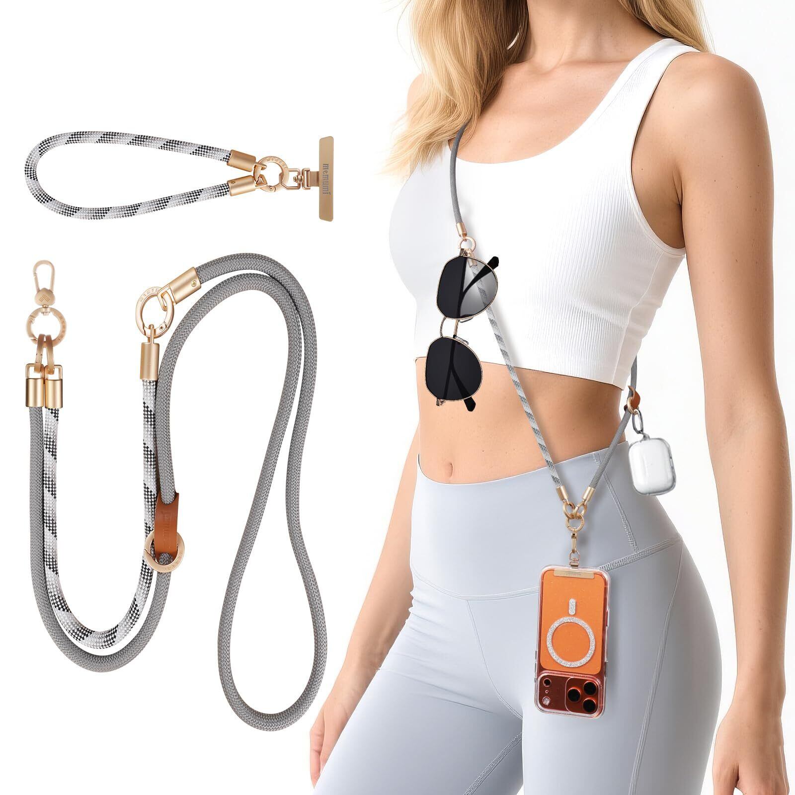 [memumi] スマホストラップ ショルダー 3 in 1 首かけ/斜めがけ/手首かけ 全機種対応 軽量 落下防止 小物収納付き 長短2色セット 携帯アクセサリー