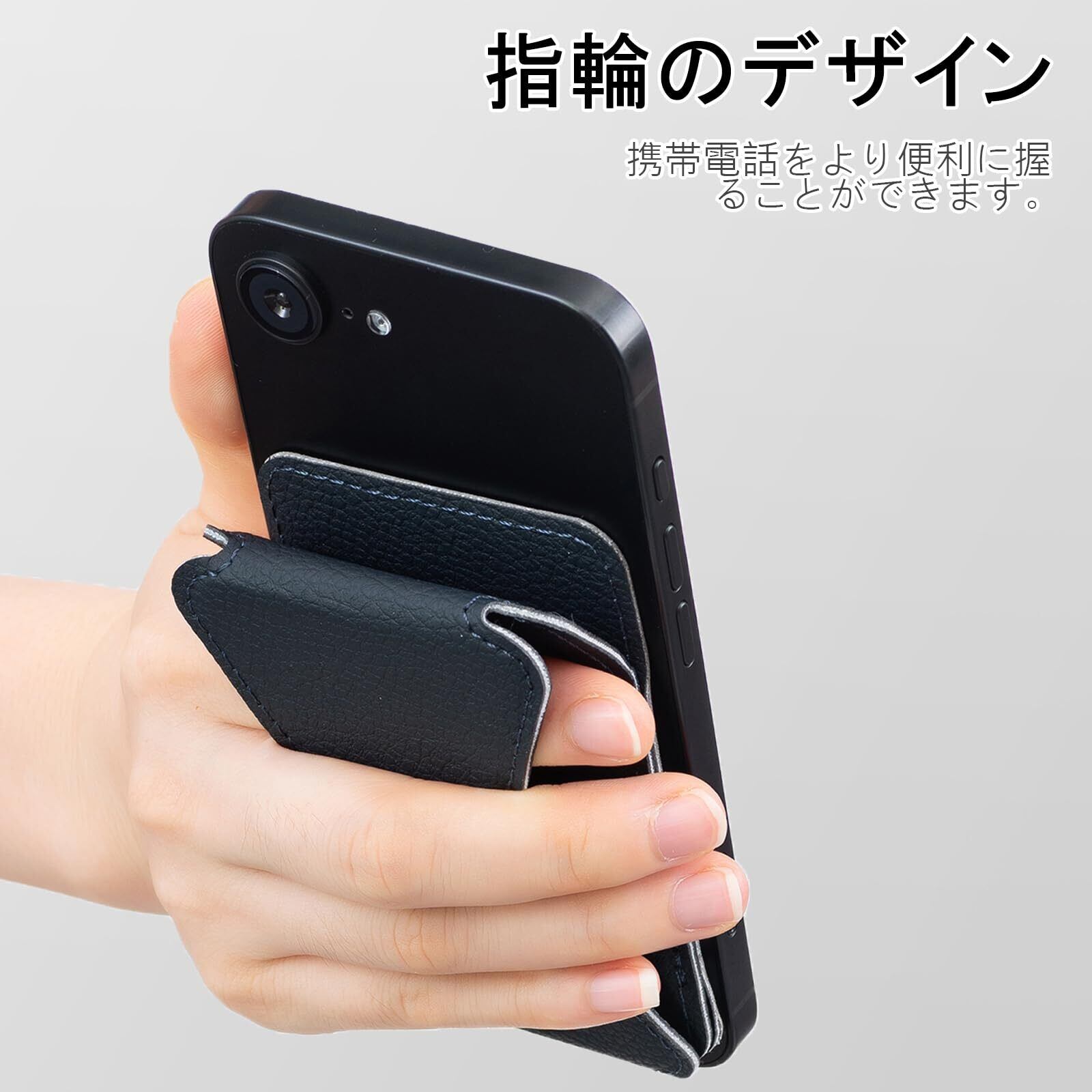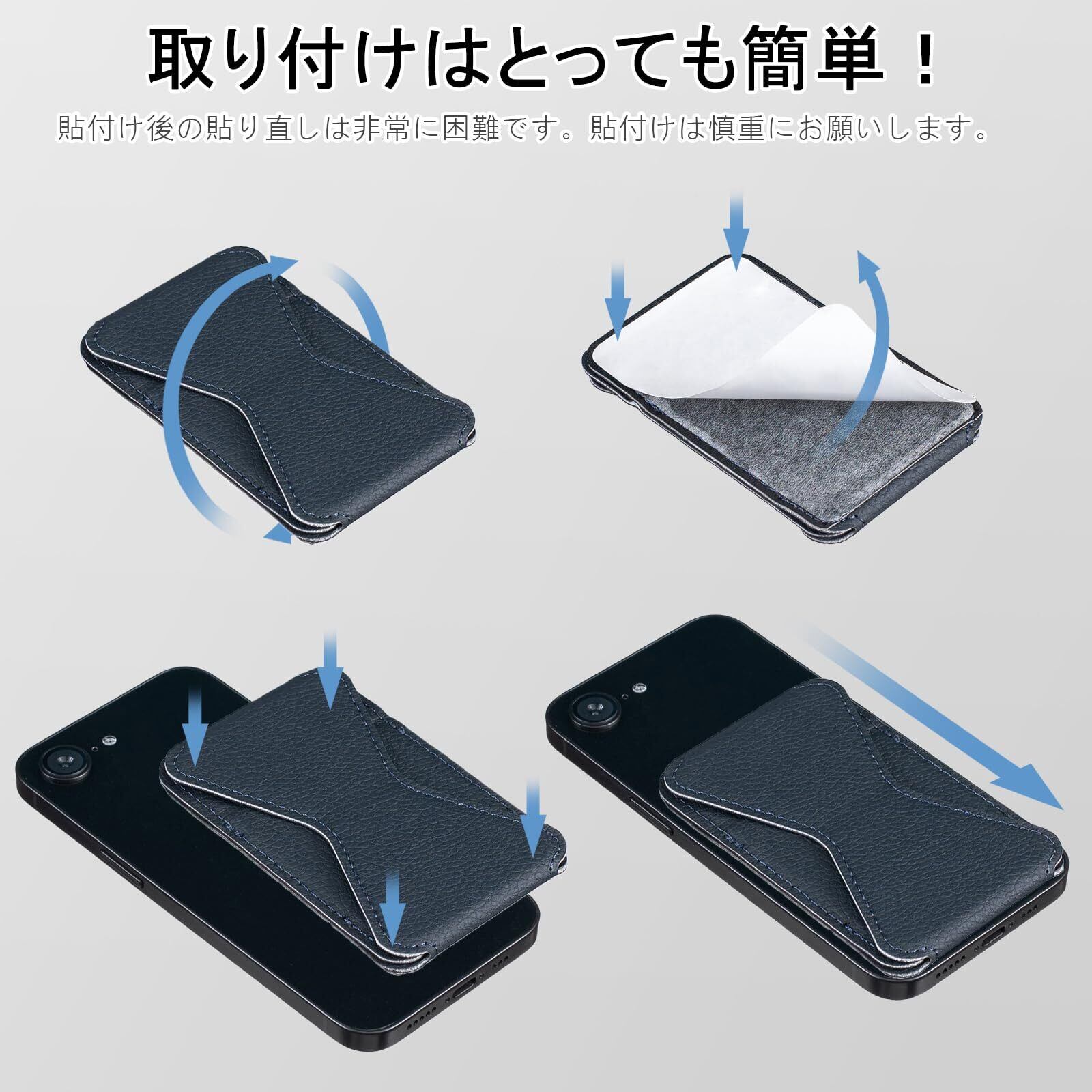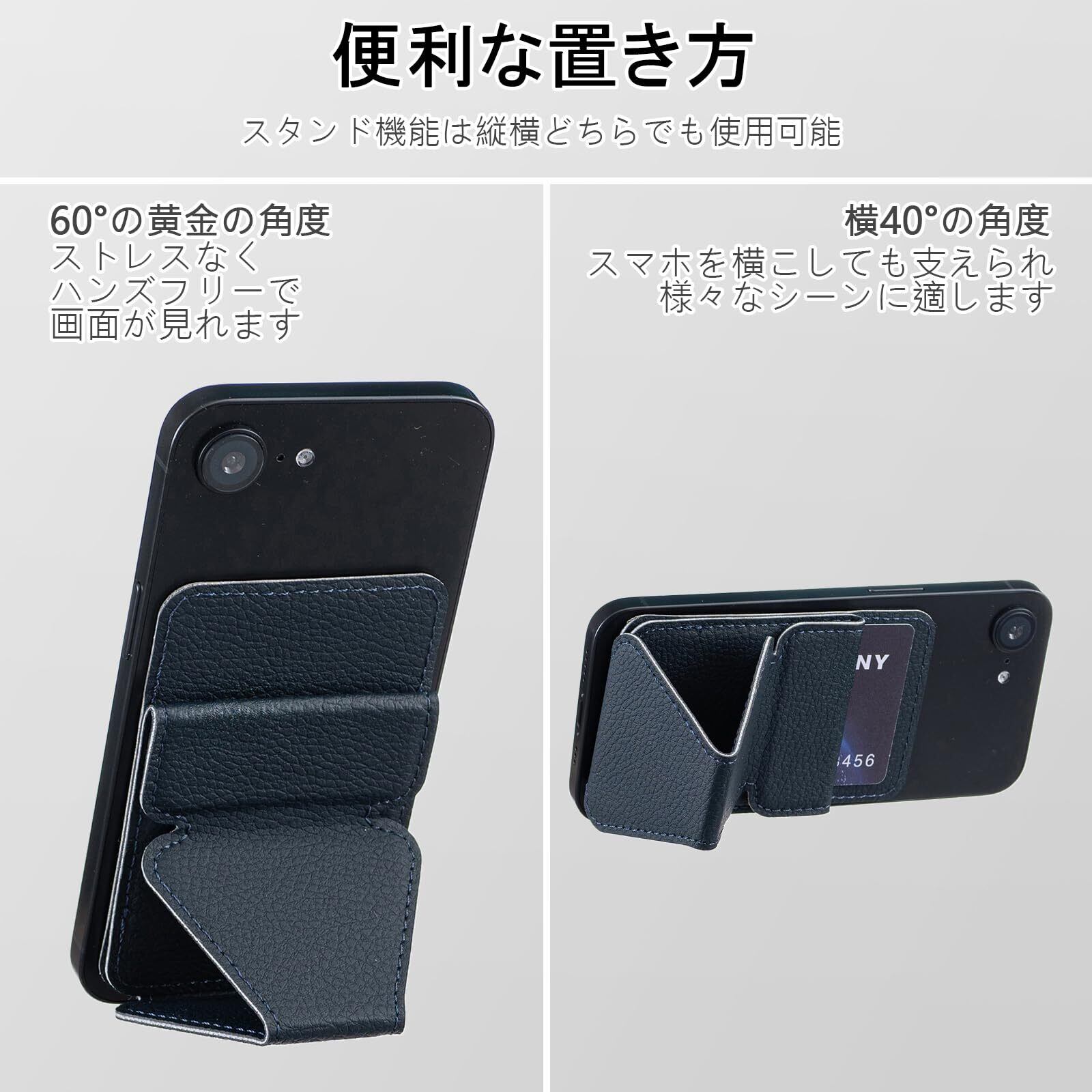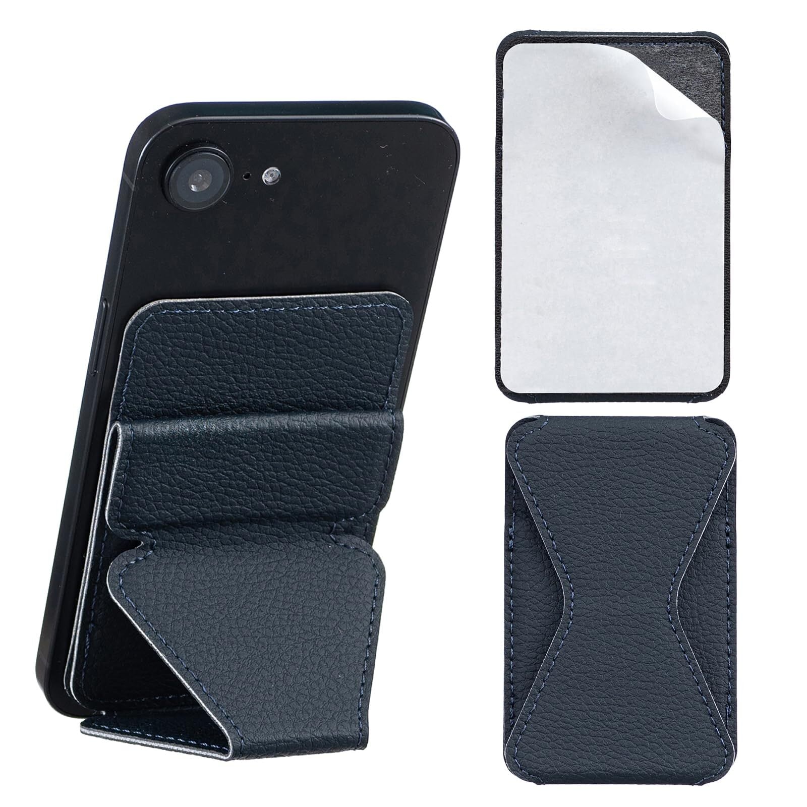 スマホスタンド カードケース 粘着型 貼り付け スマホ背面スタンド 背面カード収納 カードポケット カード入れ(ディープ ブルー) 片手操作便利 互換性のあるiphone/Android/pixel/xperia薄型 軽量 レザー 滑り止め 背面 ICカード収納 安定のスタンド機能 スマホ カードホルダー Deep blue