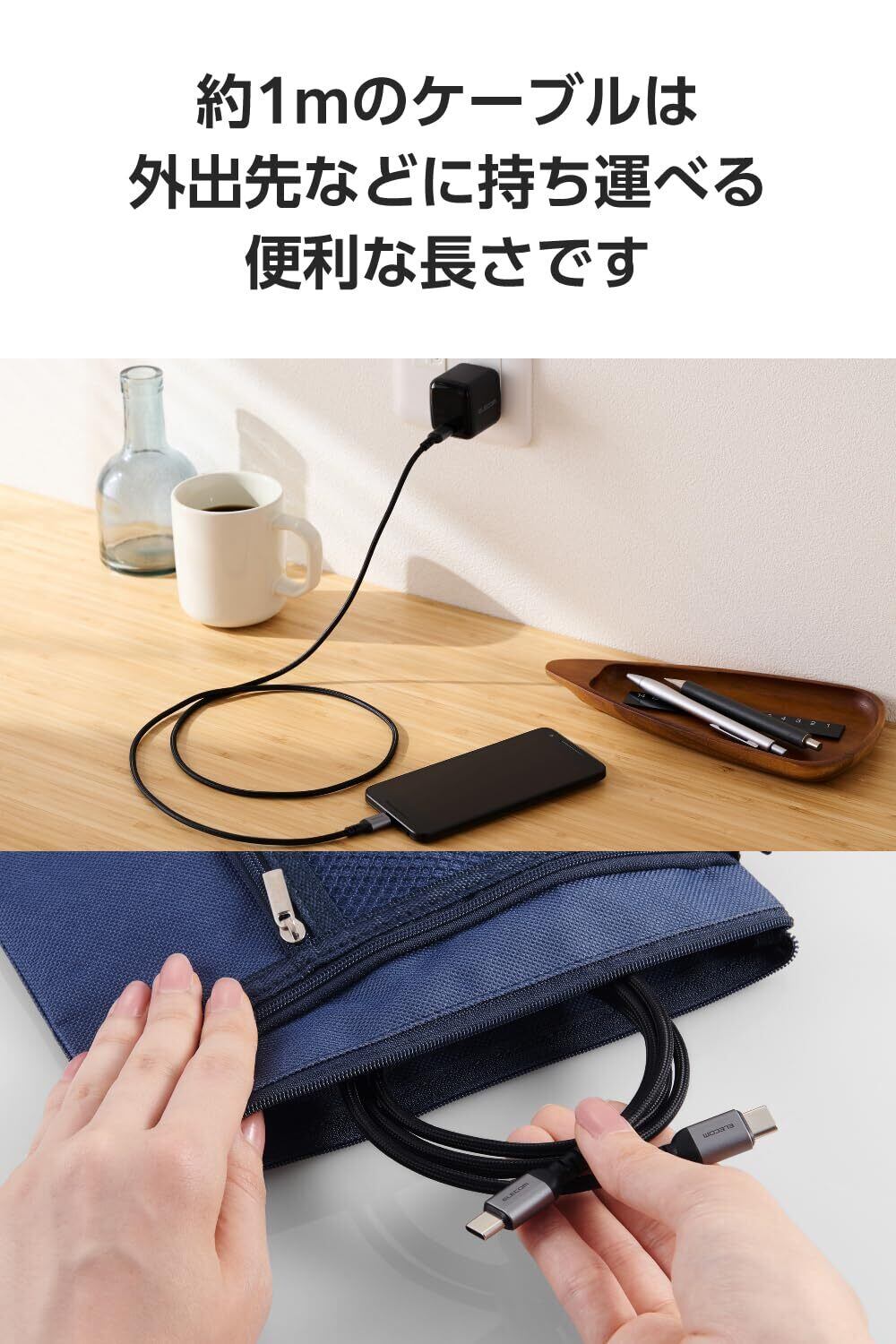 ■スマートフォンもパソコンも、これ1本で高速充電。断線に強い高耐久のUSB Type-C(TM) - USB Type-Cケーブルです。