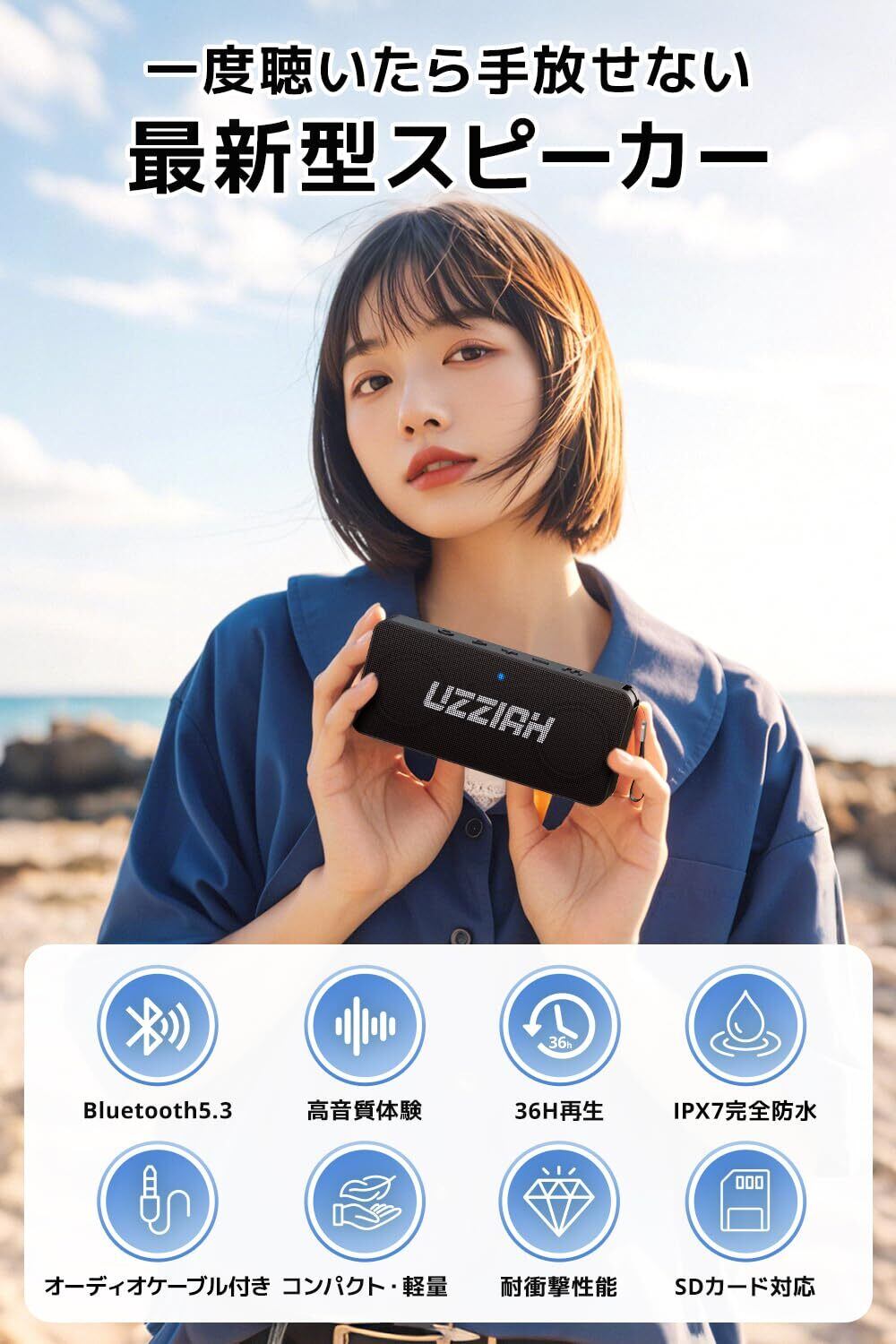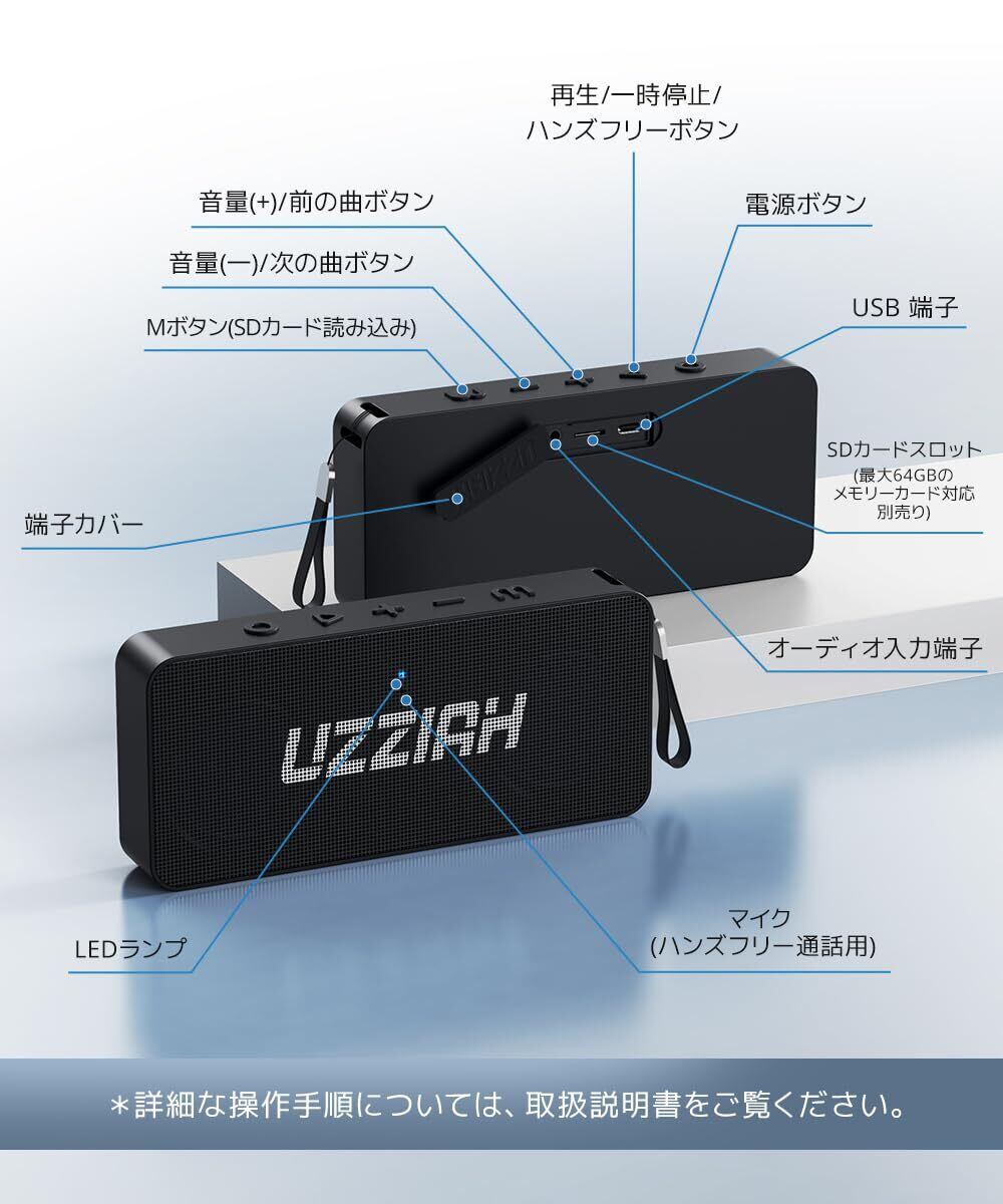 【長時間再生×急速充電|外でも安心のパワー設計】2500mAhの大容量バッテリーを搭載した ポータブルスピーカー は、最大36時間の連続再生が可能。アウトドアやパーティー、作業用BGMとして長時間の使用にも対応。Type-C急速充電にも対応しており、充電時間を短縮。 USB スピーカー としても優秀で、音楽が途切れない快適な使用感を実現します。 【マイク内蔵×通話対応|日常からビジネスまで対応