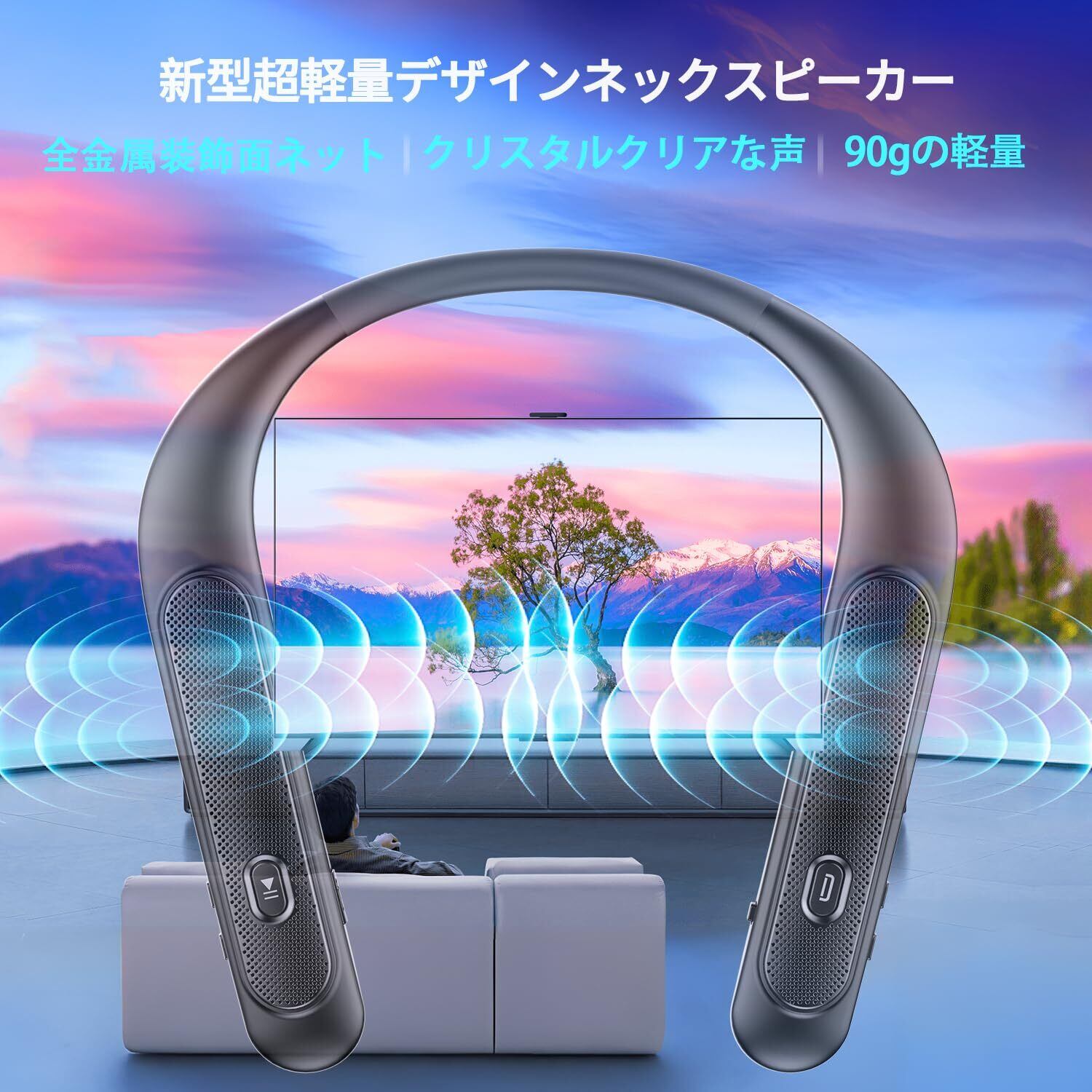 【テレビに接続可能&幅広いシーンで活躍】Bluetoothスピーカーはテレビと簡単に接続できます。ネックスピーカーと耳の位置が近くて耳元でクリアで音声が聞けます。そのため、映画やドラマなどの視聴時に、ワイヤレスで高品質な音を楽しむことができます。さらに、スポーツやジョギングなどのアクティブなシーンでも活躍し、自由な動きを妨げません。(※ご注意:開放感があるネックスピーカーですので、多少の音漏れはしますが、気になるならどうぞよくご検討ください)。