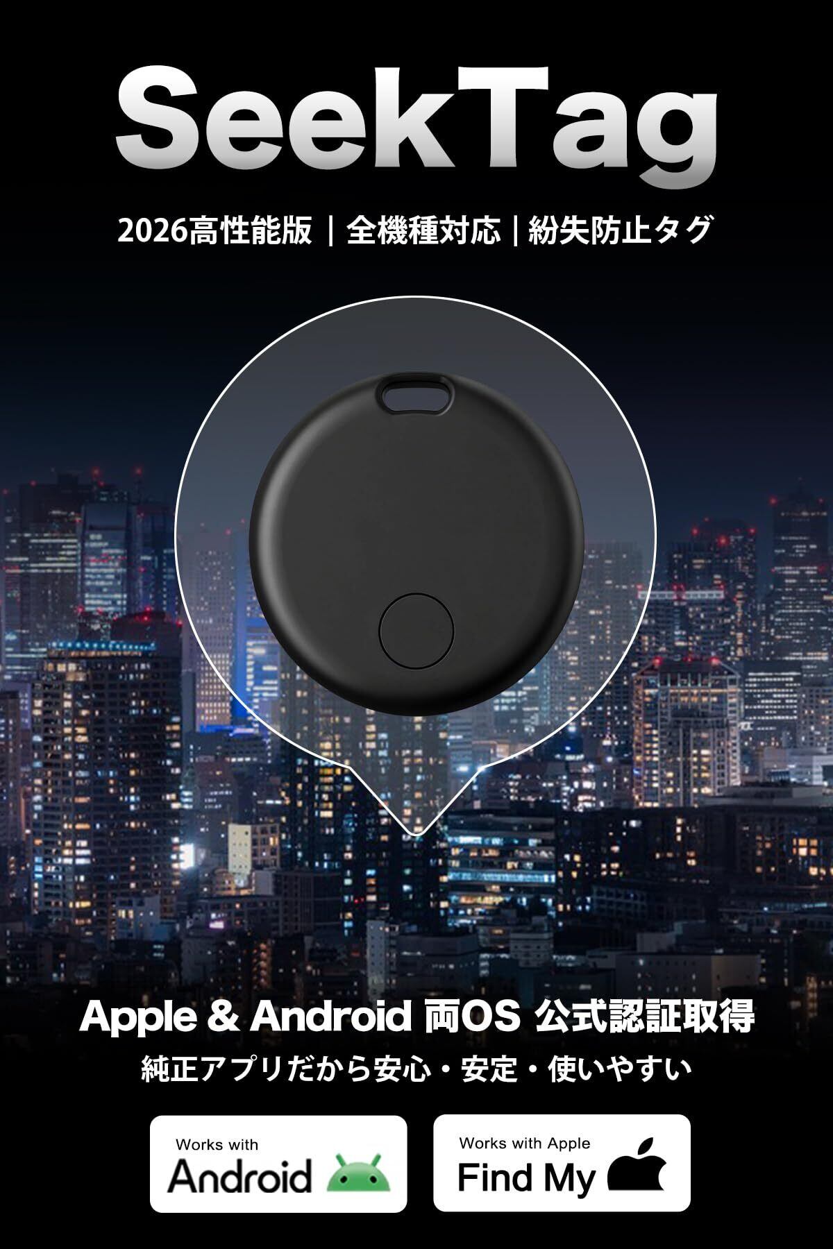 【iPhone・Android 両対応!公式アプリだから安心】従来のタグは「iPhone専用」か「Android専用」で、全機種対応タグでも非公式アプリのダウンロードが必要で、使いにくく個人情報の扱いに不安がありましたが。ついにApple&Googleダブル認定の「SeekTag」が登場!iPhoneの「探す」とAndroid最新の「FindHub(検索ハブ)」の両純正アプリに完全対応し、機種変更やOSの異なる家族間でもそのまま使えます。AndroidでもApple AirTag並みの快適な操作感を実現し、月額料金も一切不要。日本・海外どこでも追跡可能な、信頼性と利便性を兼ね備えたエアタグの決定版です!【米国製チップ搭載|高精度即反応】先端チップにより高精度トラッキングと安定接続を実現。市販品の中で最先端レベルの性能を誇り、米欧で高評価を受け、多くのユーザーから信頼されているGPSタグです。