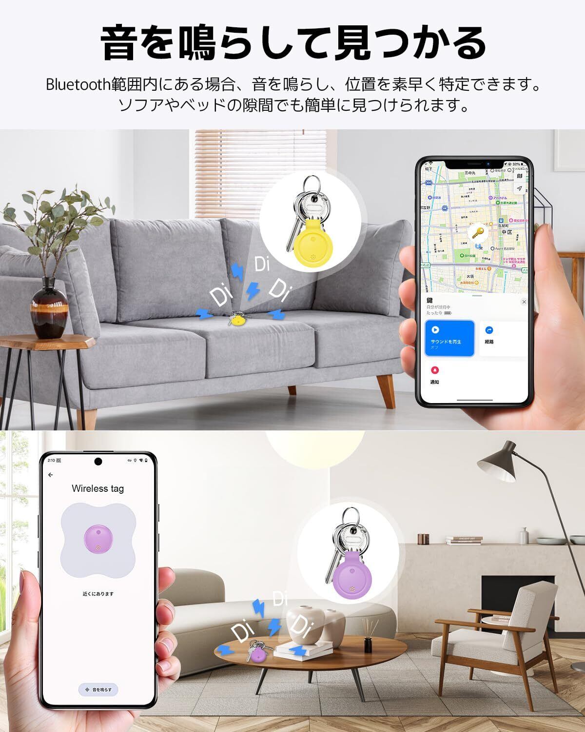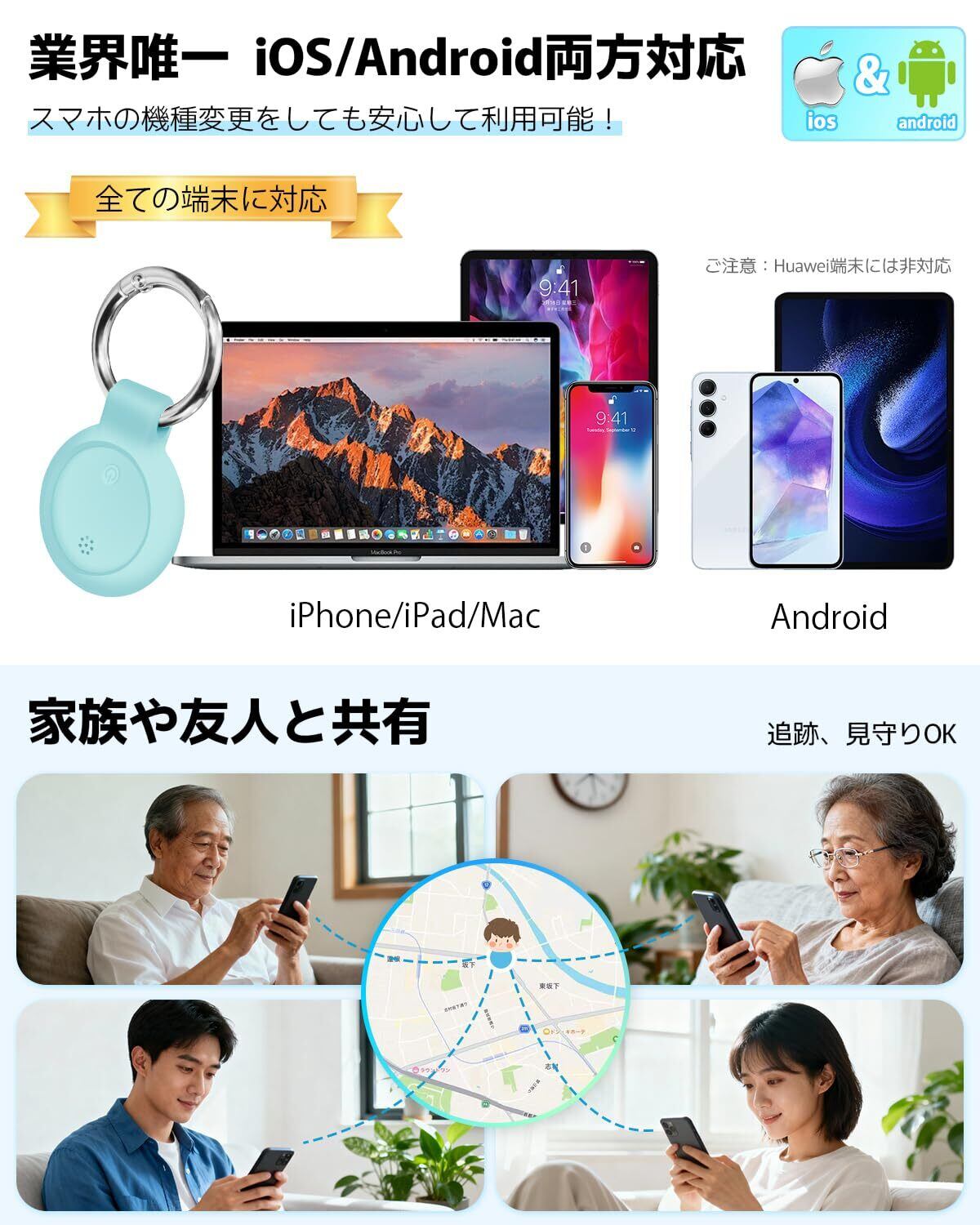 【次時代!iOS・Android全対応のairtagが新登場】一般的なタグは「iOSのみ」または「Androidのみ」対応のものが多く、家族間での共有や機種変更の際に大きな制限が生じますが、本製品はiOS・Androidの両方に完全対応しているため、スマホの種類を問わず誰でも使える「真の汎用性」を備えています。スマホを買い替えてもそのまま継続して使用できるため、「使える端末が限られて困る」「家族でアプリを揃えられない」といった心配が一切ありません!