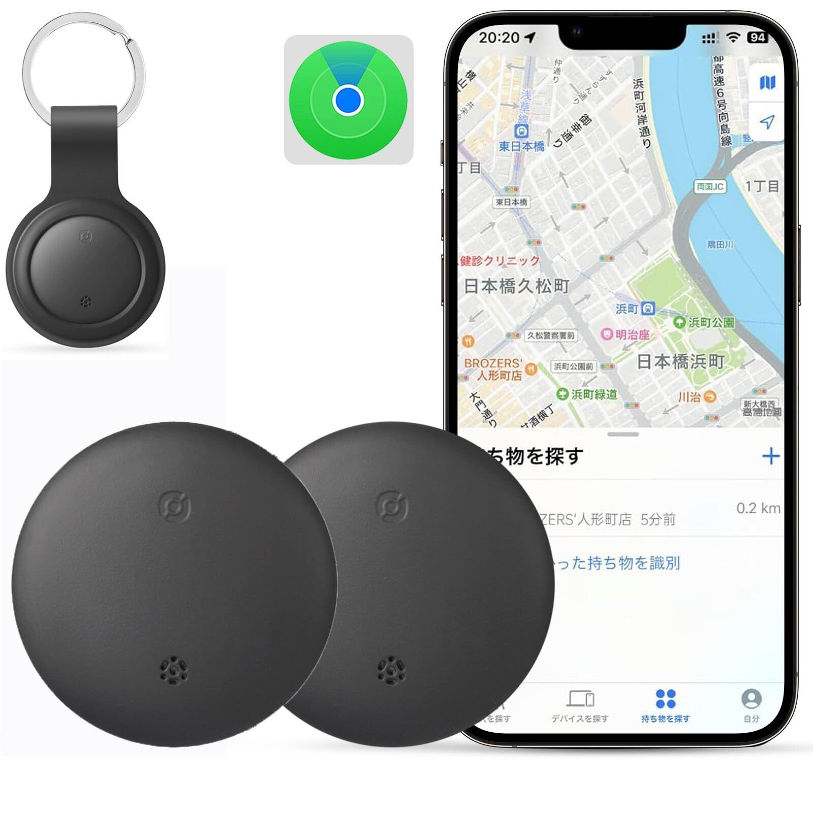 (2個セット) エアタグ apple 紛失防止タグ 超薄型 gps タグ Appleのに対応(iOS端末のみ)スマートタグ 紛失防止タグ gps 小型 バレない 車両追跡/盗難対策/財布忘れ物防止 タグ 追跡タグ 超軽量 高齢者に良い/スマホ/カバン/キー/荷物/電池交換可能 日本語説明書付き(ブラック)