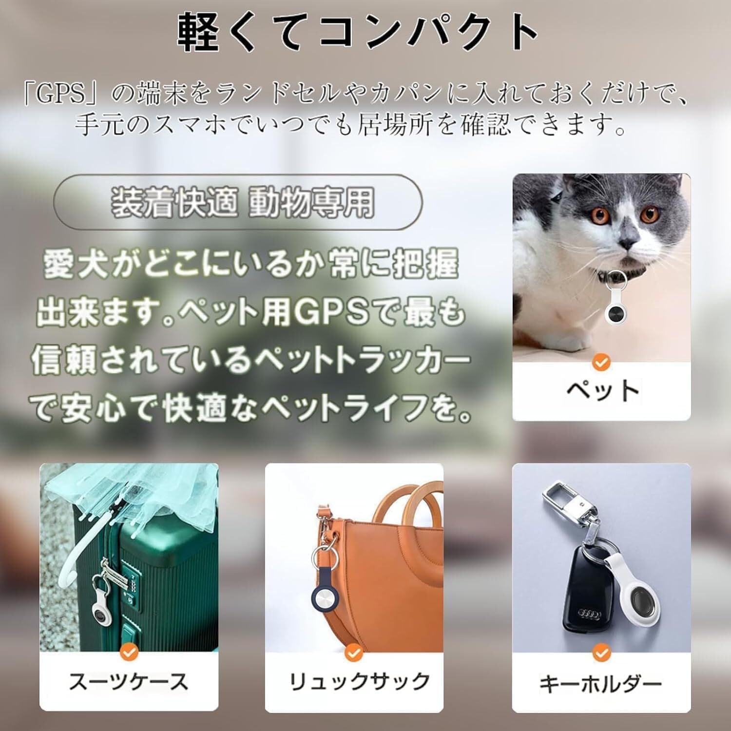 GPS全地球測位 スマートトラッカー 超軽量 小型GPS発信機 防水性 電池交換可能 電池寿命約3年 通信距離無限で月額¥0 スマホ/カバン/キー/荷物/ペットの首輪に掛ける (キーホルダー+予備電池2個+日本語説明書付)