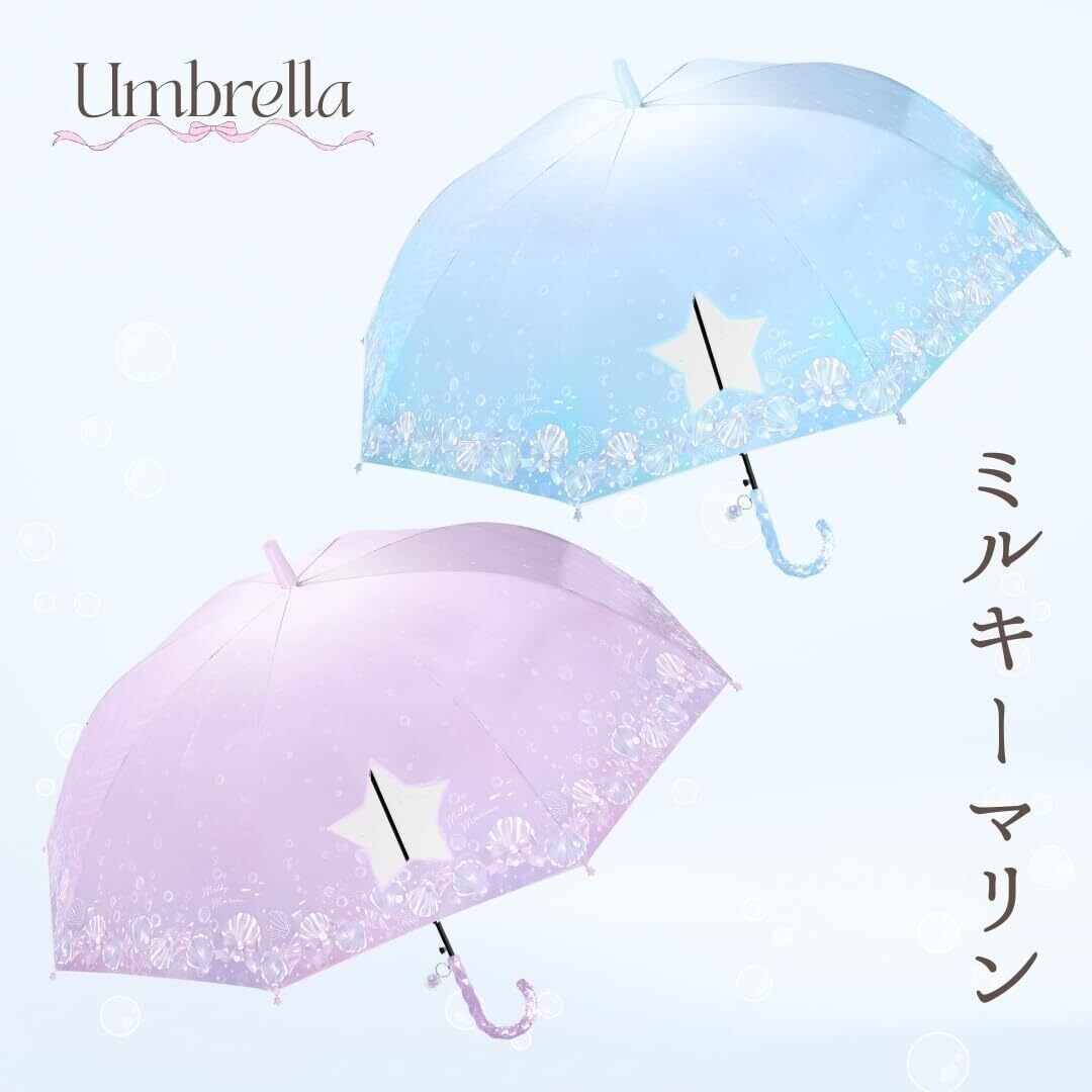 子供用 女の子 傘 ミルキーマリン パープル ビニール傘 透明マド付き 親骨 55cm 8本骨 長傘 ジャンプ傘 チャーム付き キッズ 雨傘 小学生 中学生 可愛い かわいい 通学 ワンプッシュボタン 透明窓
