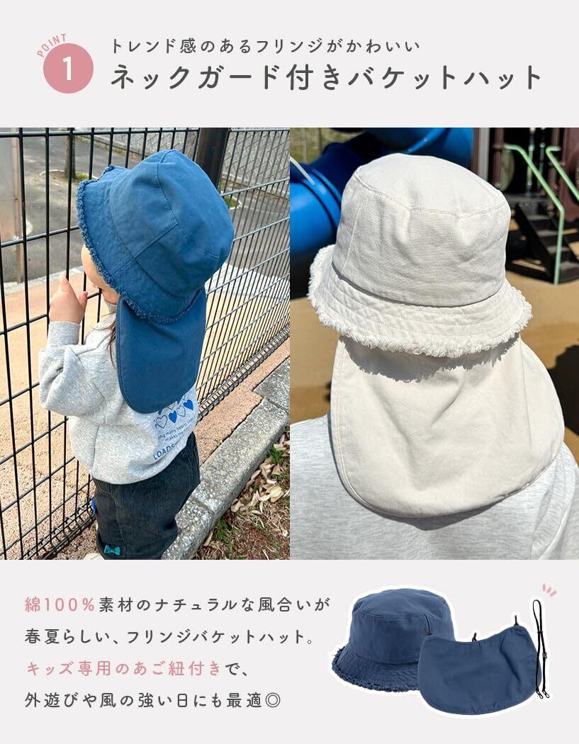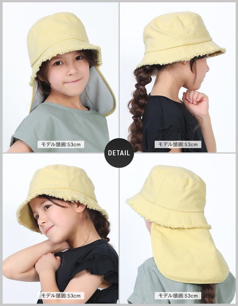 【数量限定】ルーアンドシー キッズ 帽子 ハット フリンジ バケットハット あご紐 安全ストッパー付き ネックガード付き 接触冷感 綿 コットン 遮光100% uvカット 紫外線対策 サイズ調整可能 ユニセックス 男女兼用