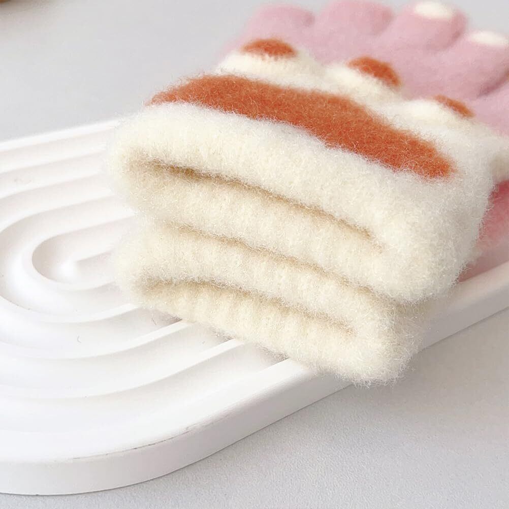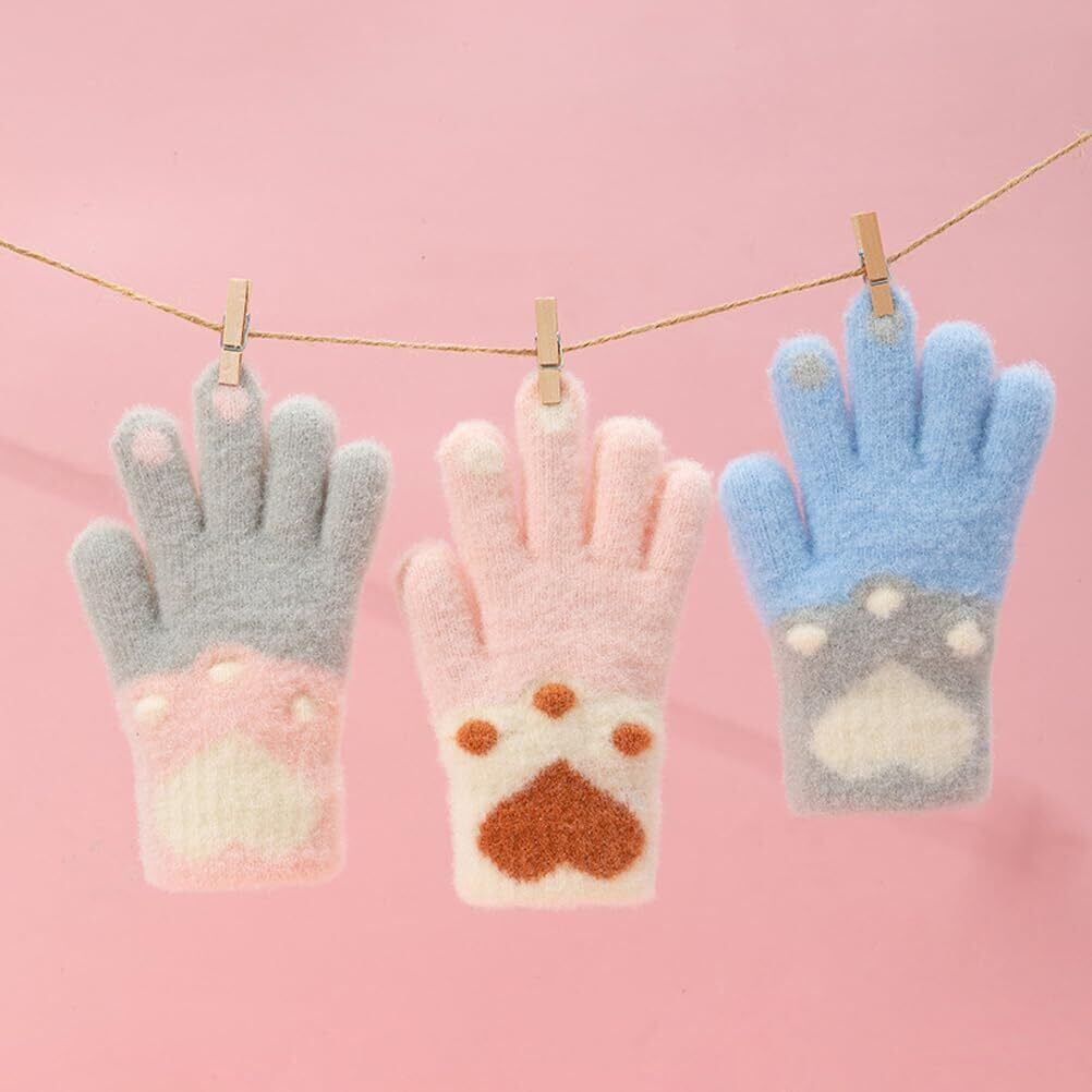 手袋 子供用 キッズ モコモコ グローブ ニット手袋 秋冬 厚手 裏起毛 保温 防寒 児童 5本指 女の子 男の子 通園 通学 自転車 お出かけ 可愛い 暖かい アウトドア 5-10歳