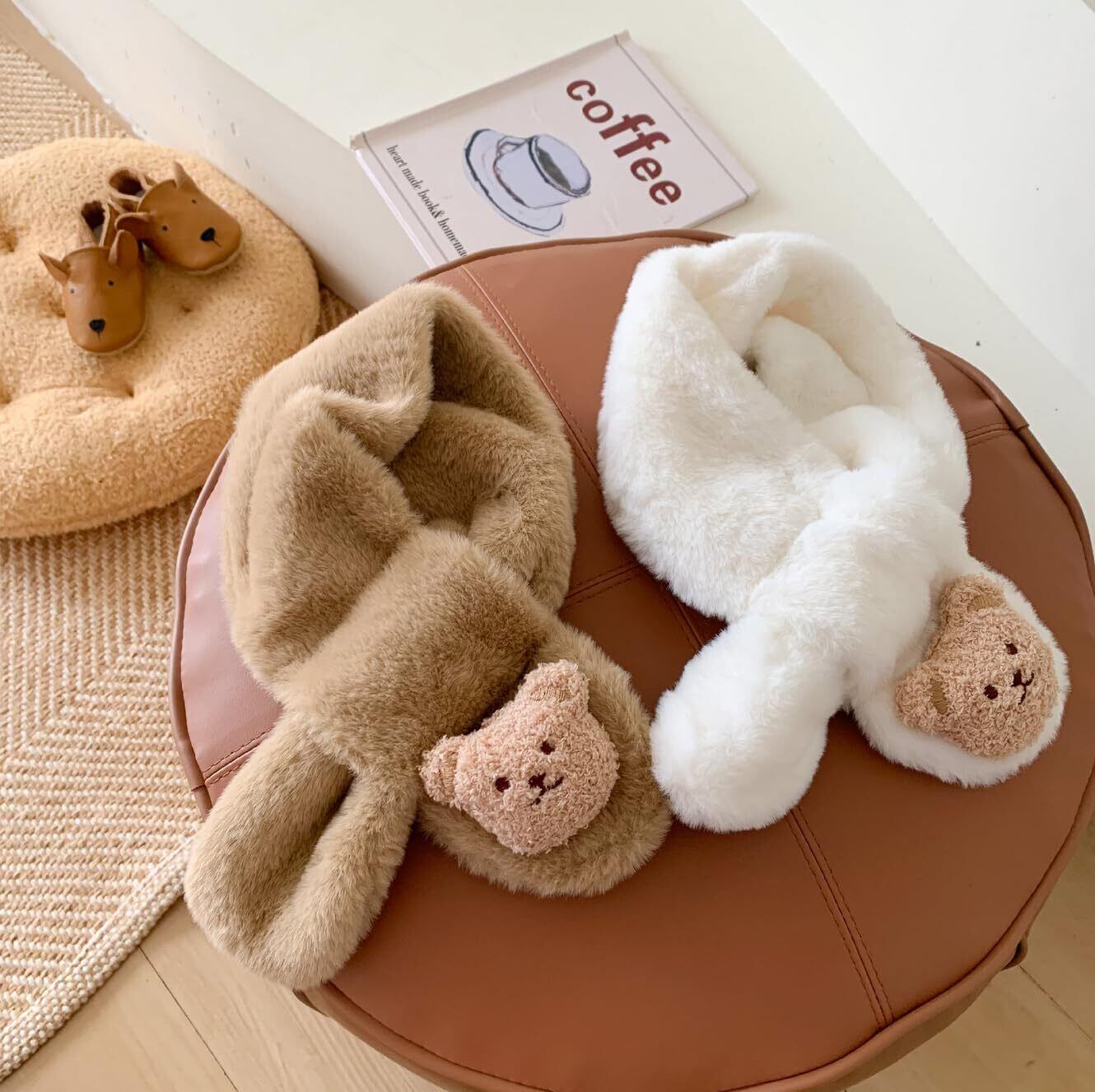 もこもこ・ふわふわで、寒い冬にぴったりな可愛いキッズ用マフラー。ずっと着けていたくなるような、柔らかくて肌触りの良い素材です。