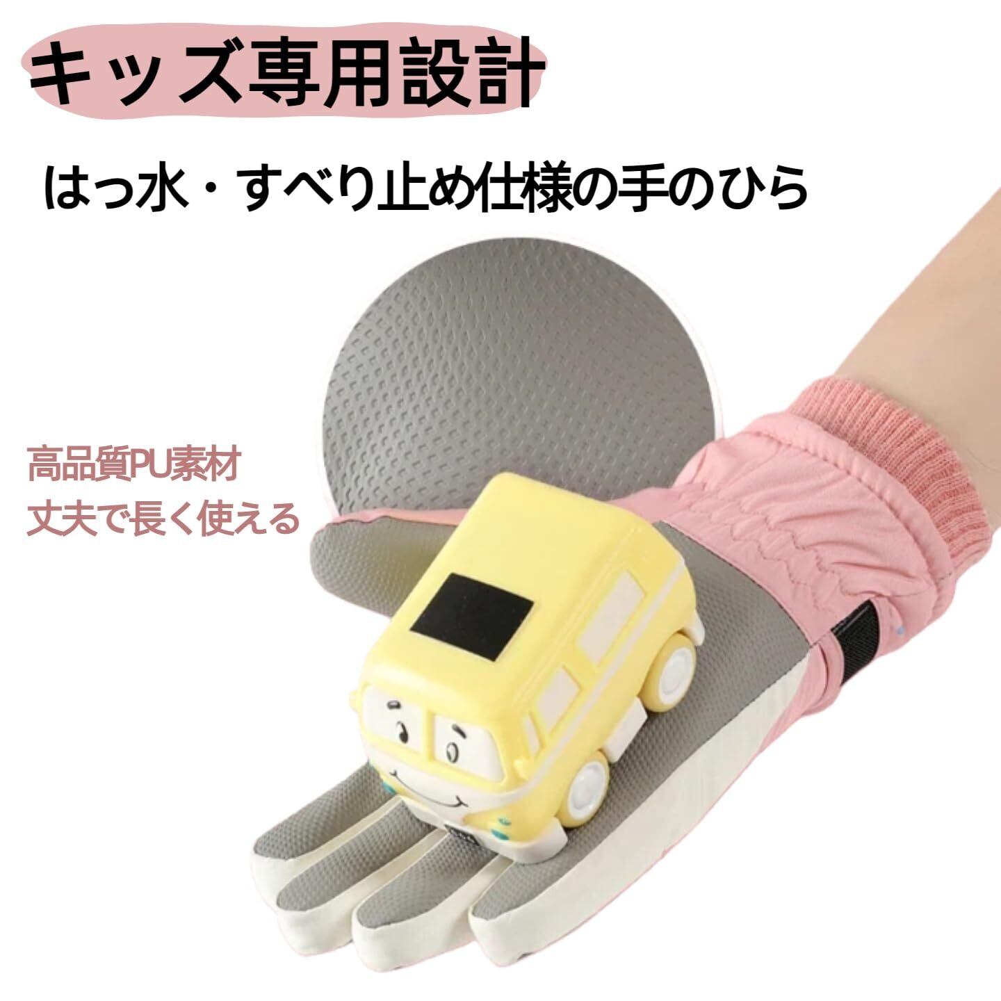 【すべり止め加工の手のひら】手のひら部分には滑り止め加工を施し、しっかりと握りやすい設計です。おもちゃ、自転車、雪遊び用具なども安定して持つことができ、アクティブに動くお子さまにも安心です。