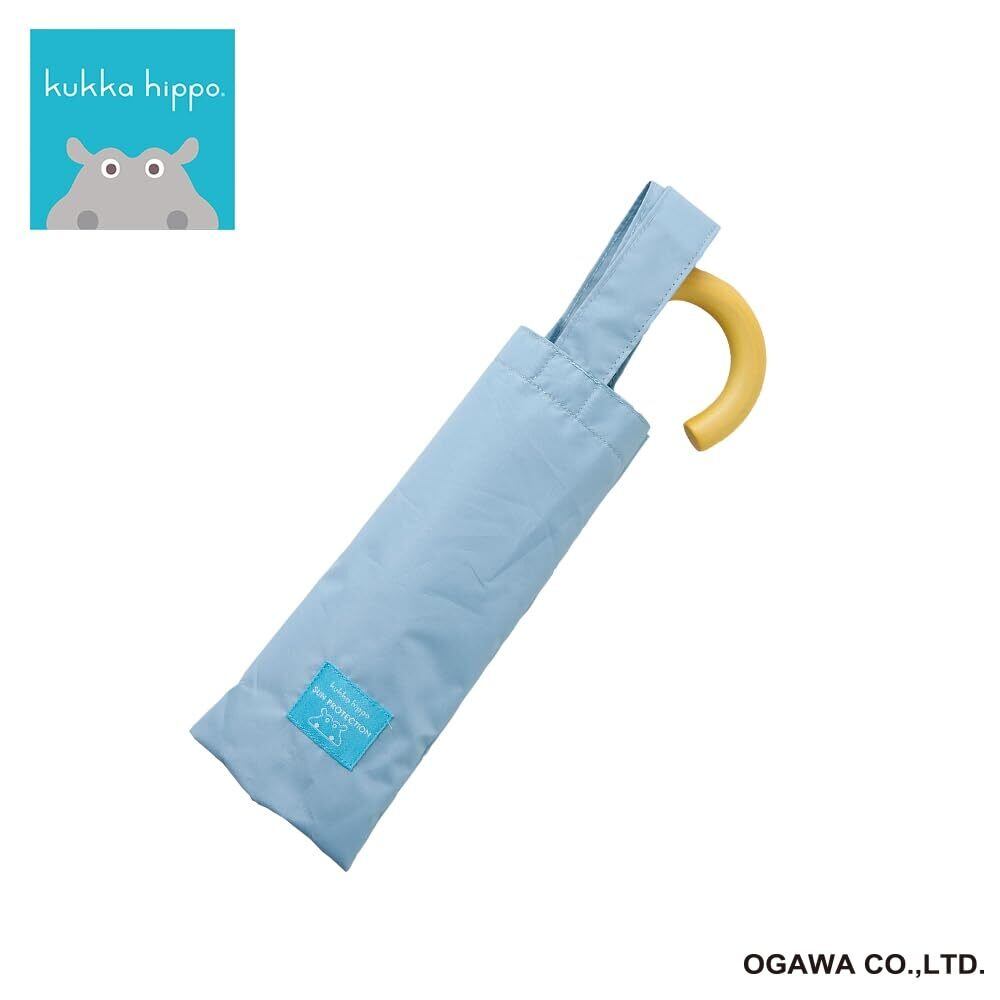 小川(Ogawa) キッズ折りたたみ傘 子供日傘 手開き式 50cm kukkahippo クッカヒッポ サックス×ネイビー UVカット率&遮光率99.9%以上 遮熱加工 安全手開き ネームバンド付 トートバック型共袋付 カバさんの反射プリント付 晴雨兼用 60221