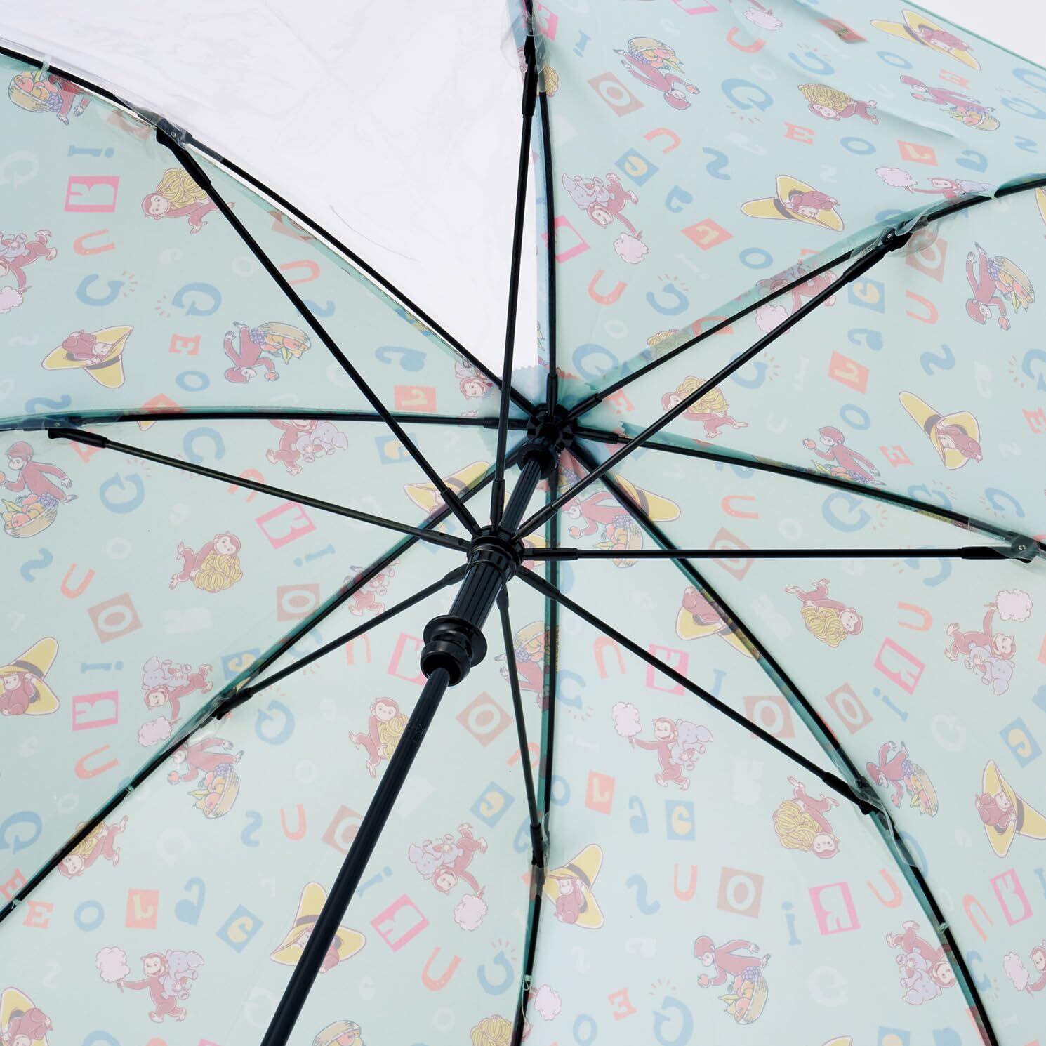スケーター(Skater) 子供用 傘 45cm おさるのジョージ アルファベット 男の子 女の子 5~6才 105~115cm 視界が確保できる 透明窓付 指を挟みにくい 手開き式 8本骨 UB45-A