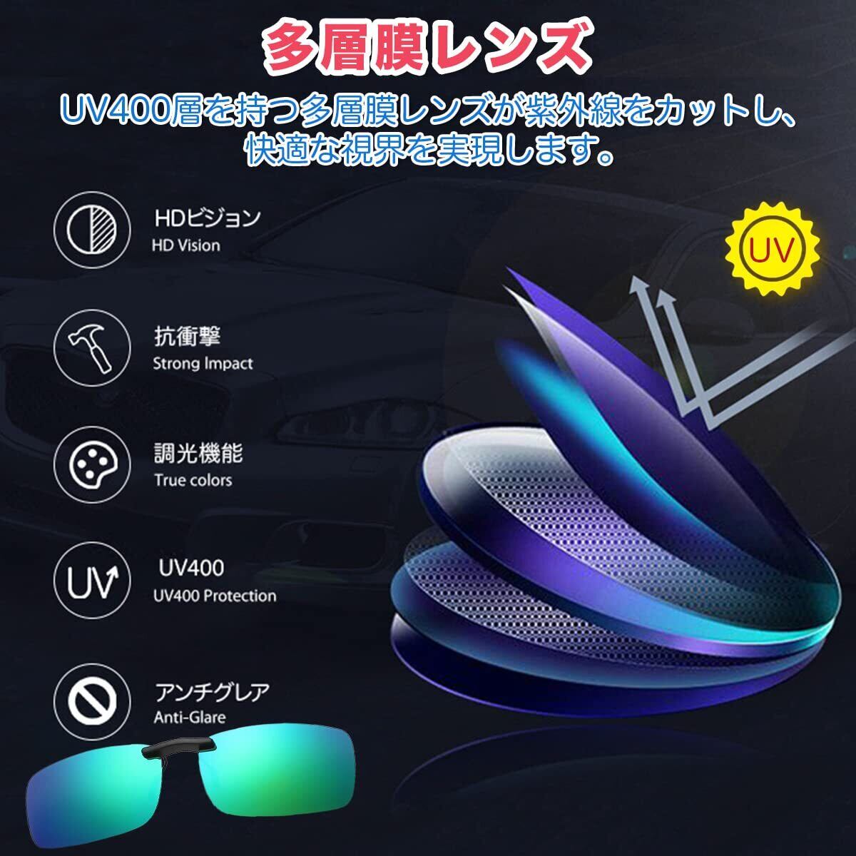 サングラス 偏光 UVカット 眼鏡の上から クリップオン ワンタッチ装着 軽量5g