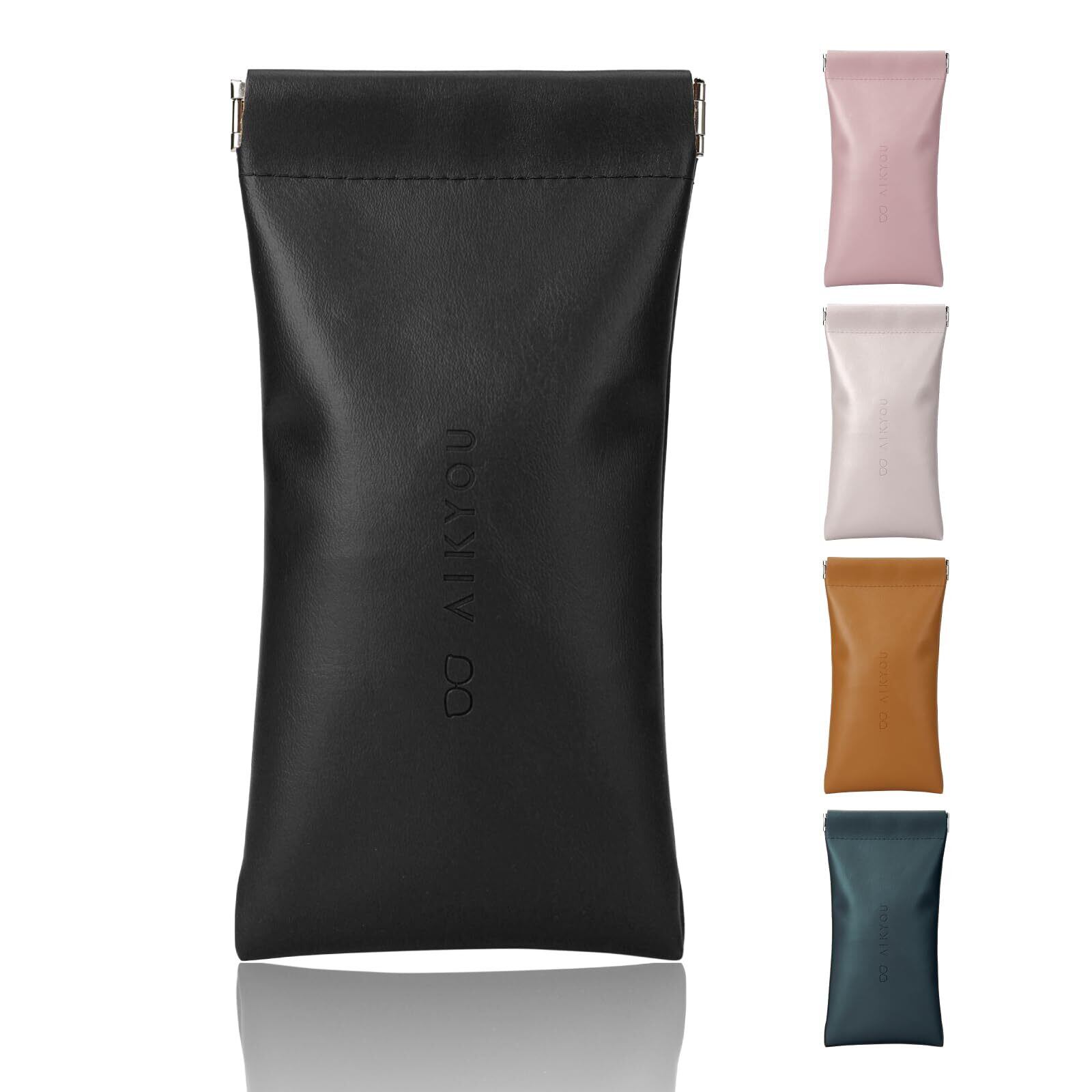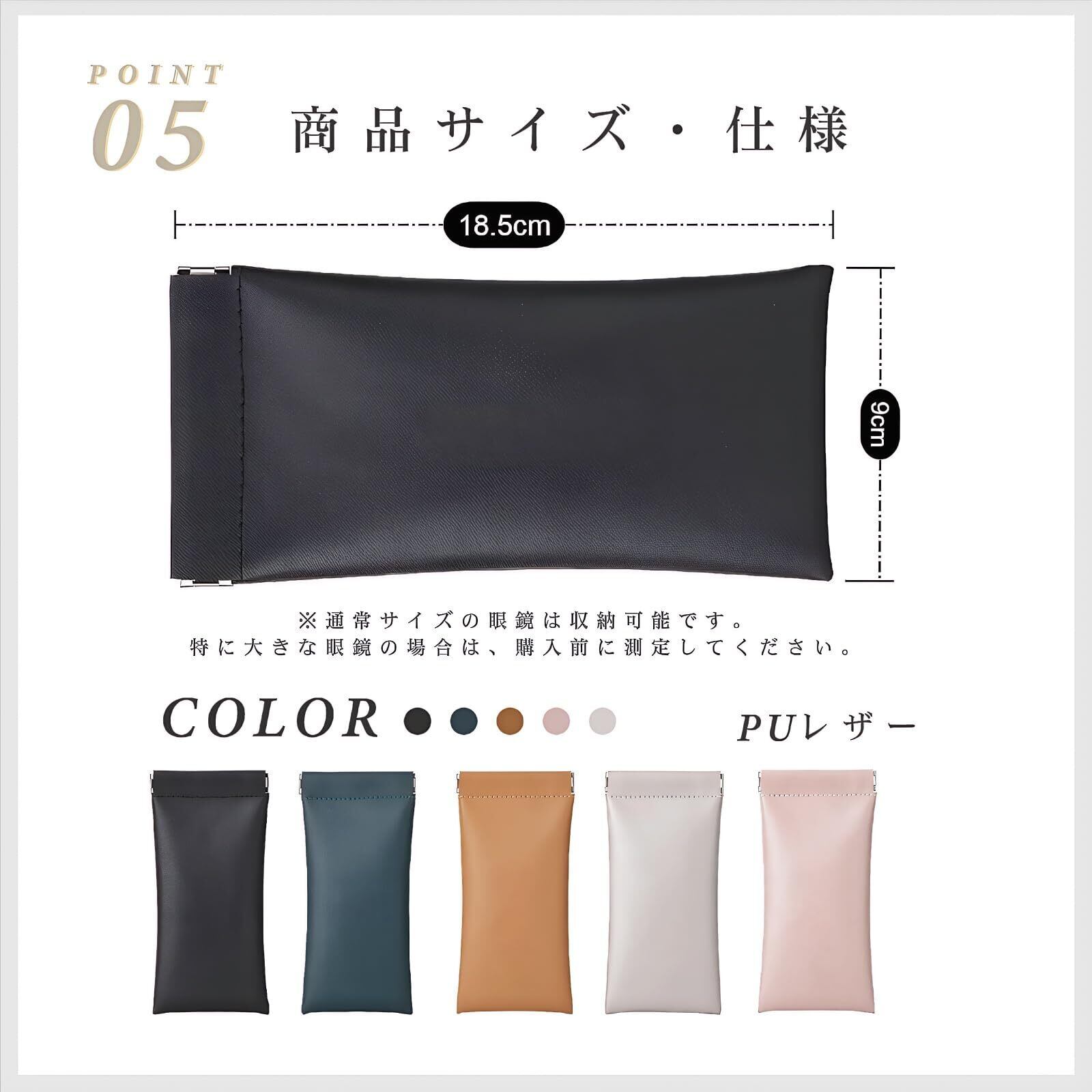 PUレザー メガネケース 眼鏡収納 ソフトタイプ 片手で開けられる設計 老眼鏡・サングラス対応 男女兼用 軽量 携帯便利 傷・ほこりから守る 5色展開(ブラック・ホワイト・ベージュ・ピンク・グリーン)