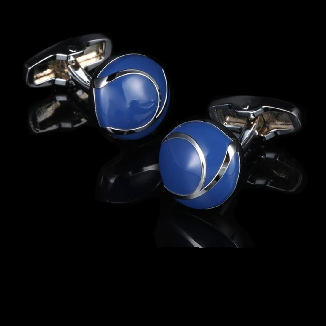 【Rockyu カフスボタン】ブルー シルバー カフスボタン おしゃれ 紳士ジュエリー 素材:真鍮 カフスサイズ:14mm * 14mm