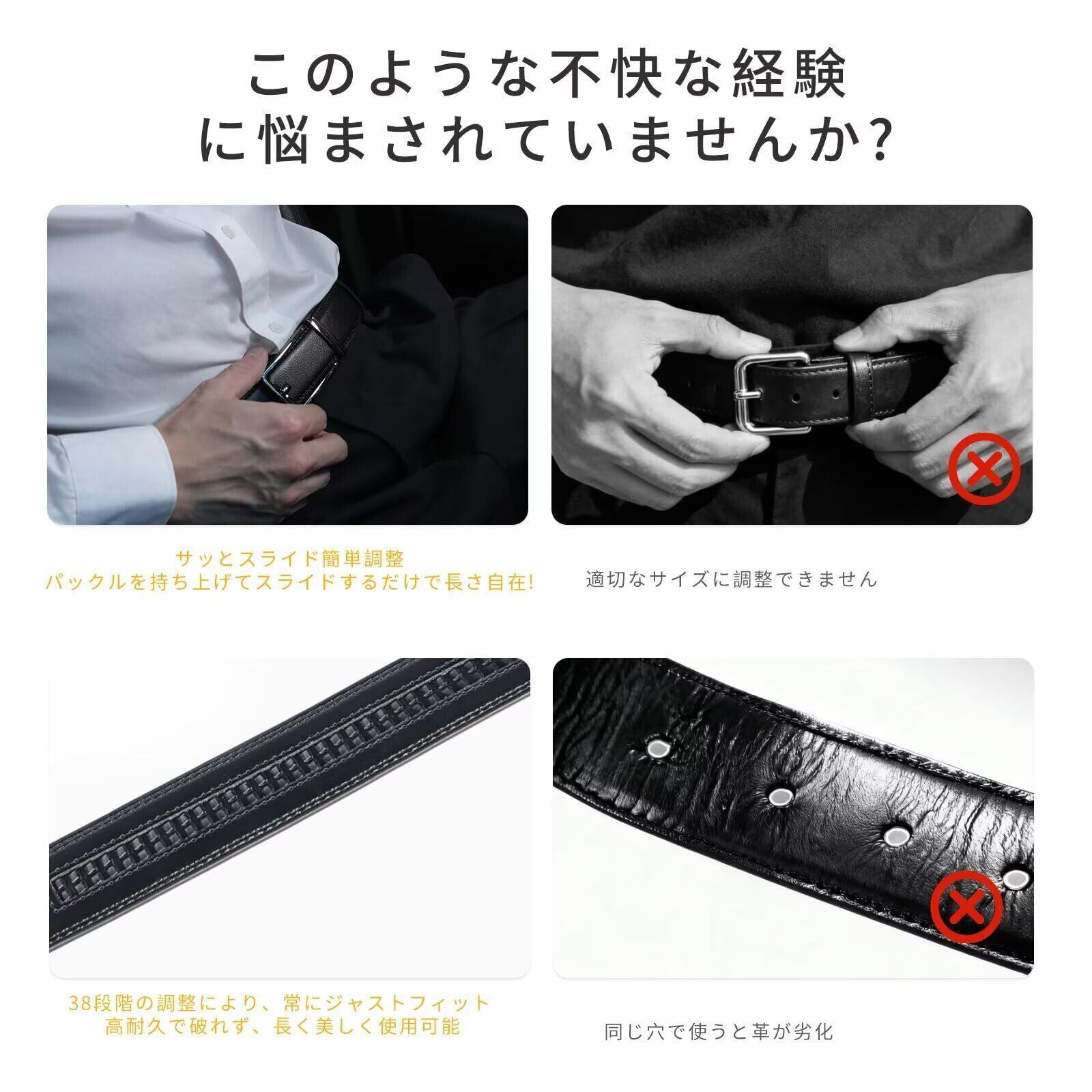 【数量限定】ベルト メンズ スーツ ビジネス 紳士ベルト 本革 革ベルト オートロック 無段階調整 穴なし 多サイズ 箱付き