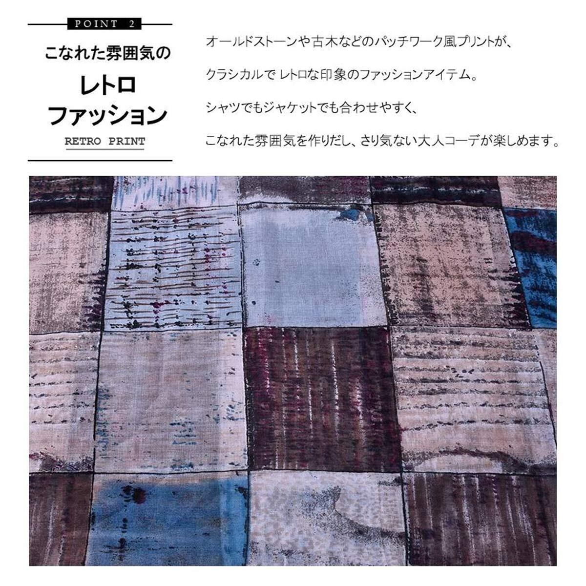 【 こなれた雰囲気の レトロ ファッション 】 オールドストーンや古木などのパッチワーク風プリントが、クラシカルで レトロな印象のファッションアイテム。シャツでもジャケットでも合わせやすく、こなれた雰囲気を作りだし、さり気ない大人コーデが楽しめます。