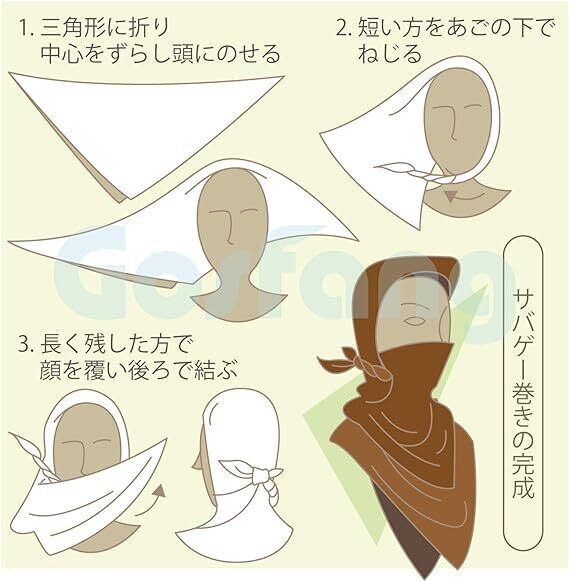 マフラーやスカーフのように首に巻いてワンポイントにするのはもちろん、肩に一枚羽織るだけで防寒対策も出来、簡単にお洒落なスタイルが完成します。冬場だけではなく、夏のエアコン対策にも◎。ひざ掛けとして、ゆったりと首に巻いていざというときのフェイスマスク代わりに。またサバイバルゲームをお好みの方は、シュマグ巻きをすることも可能です。