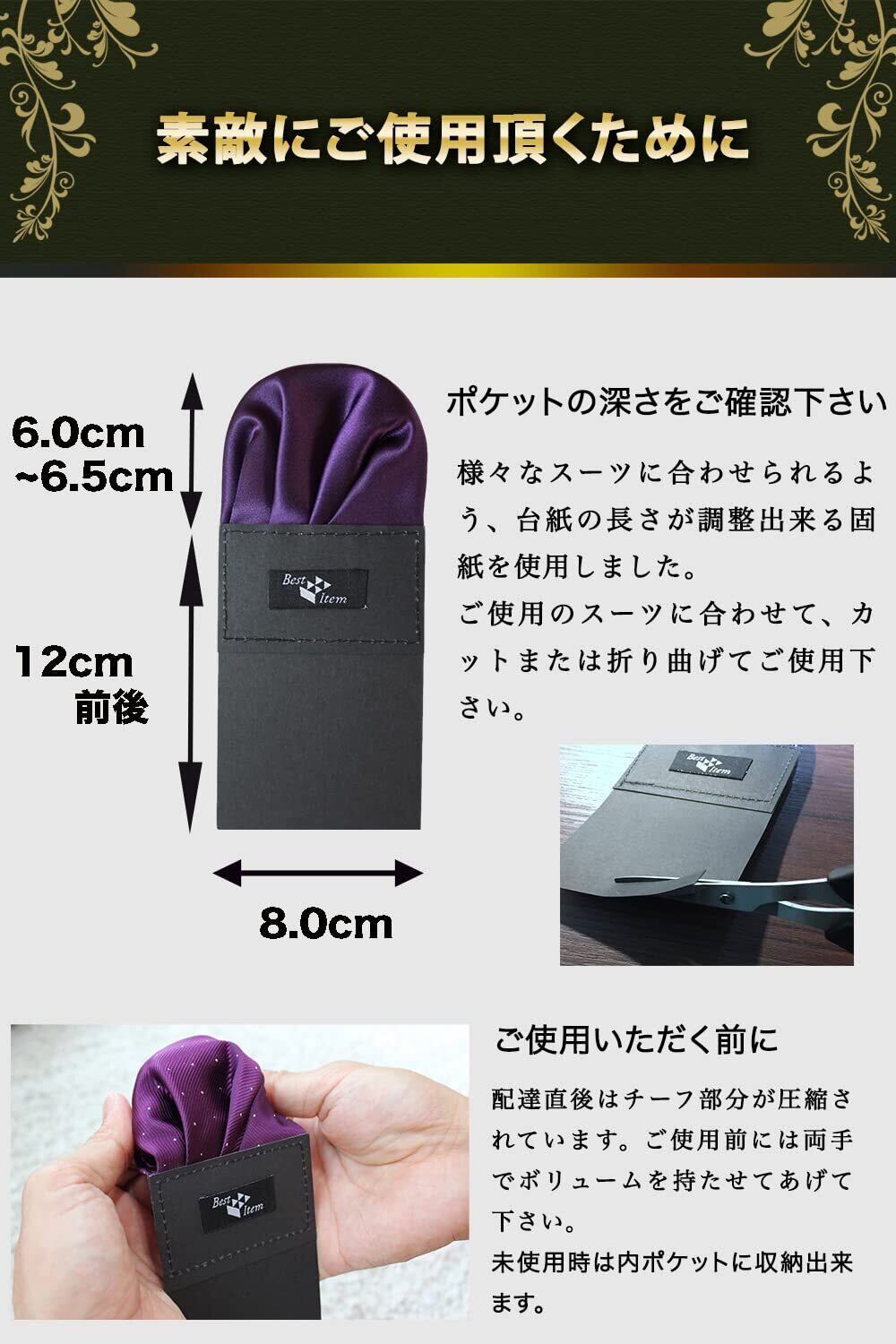 結婚式やパーティー等で活躍するポケットチーフ。いつも折り方が気になるところですが、当商品は型崩れしない台紙付き。台紙は厚紙で製造しておりますので、胸ポケットの深さにあわせてカットしてご使用下さい。 イタリアやイギリスにおいてスーツやネクタイと合わせて楽しまれるようになったメンズチーフ。 シルク、麻、リネン素材のブランドに負け劣りしない、光沢を持ったポリエステル素材で仕上げました。22色のバリエーションにサテンの光沢がマッチして大人のオシャレ感が漂います!配送時はチーフがつぶれている可能性があるので、ご使用前に手でボリュームを持たせて下さい。 検品に合格した商品のみタグを取り付けています。※タグは裏面に付いています。【サイズ】縦:台紙部12cm・チーフ部6.0cm前後、横幅:8cm、チーフ厚:1~1.5cm ※台紙部は最短のサイズを掲載させいただいております。製造工程上、多少の誤差が生じますので、カットしてお使い下さい。掲載写真は撮影時の明るさや光の反射により、現物の色と多少の誤差が生じる場合があります。予めご了承下さりますよう、お願い申し上げます。