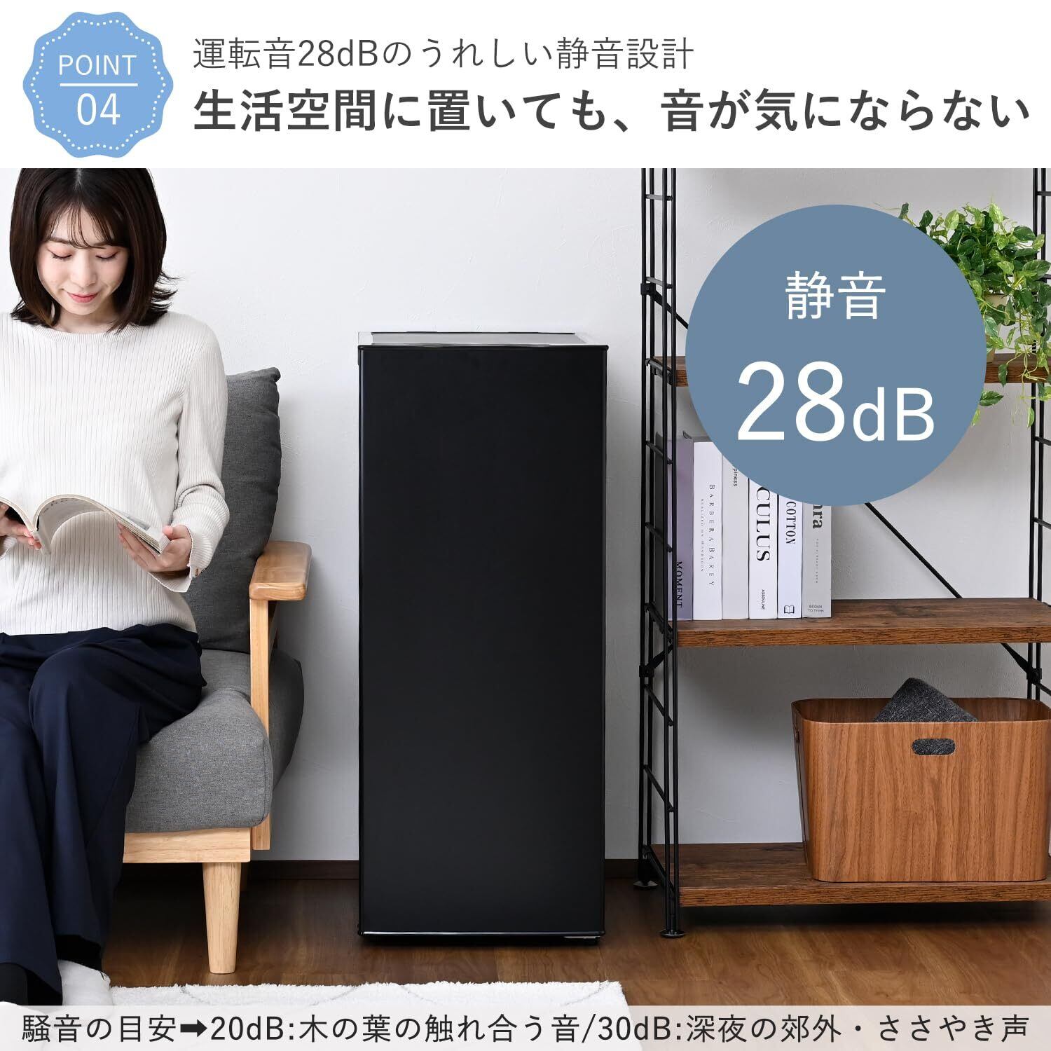 ●冷蔵庫と並べて置いても邪魔にならず、シンプルデザインなので、キッチンではもちろんリビングやダイニングへの設置もオススメ。