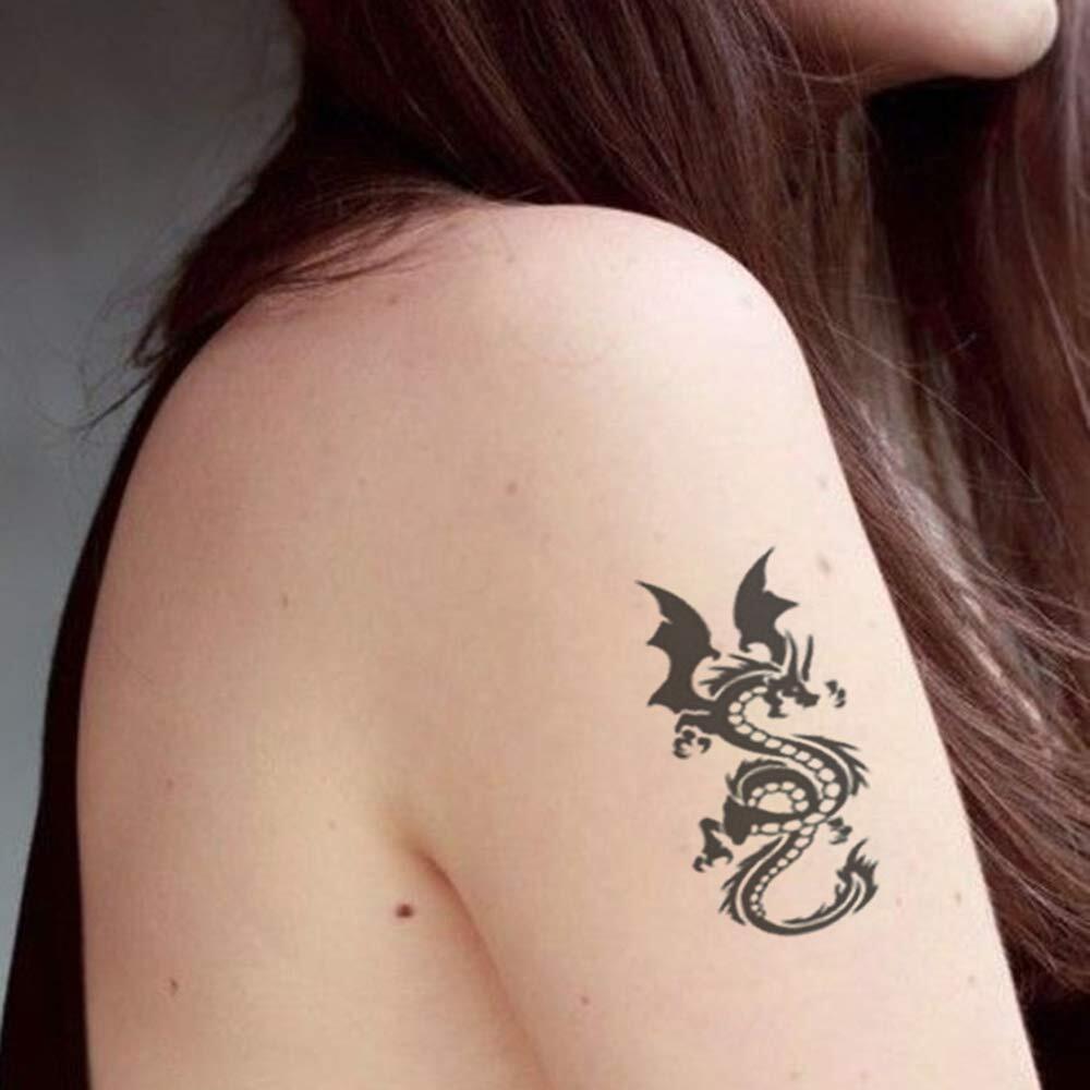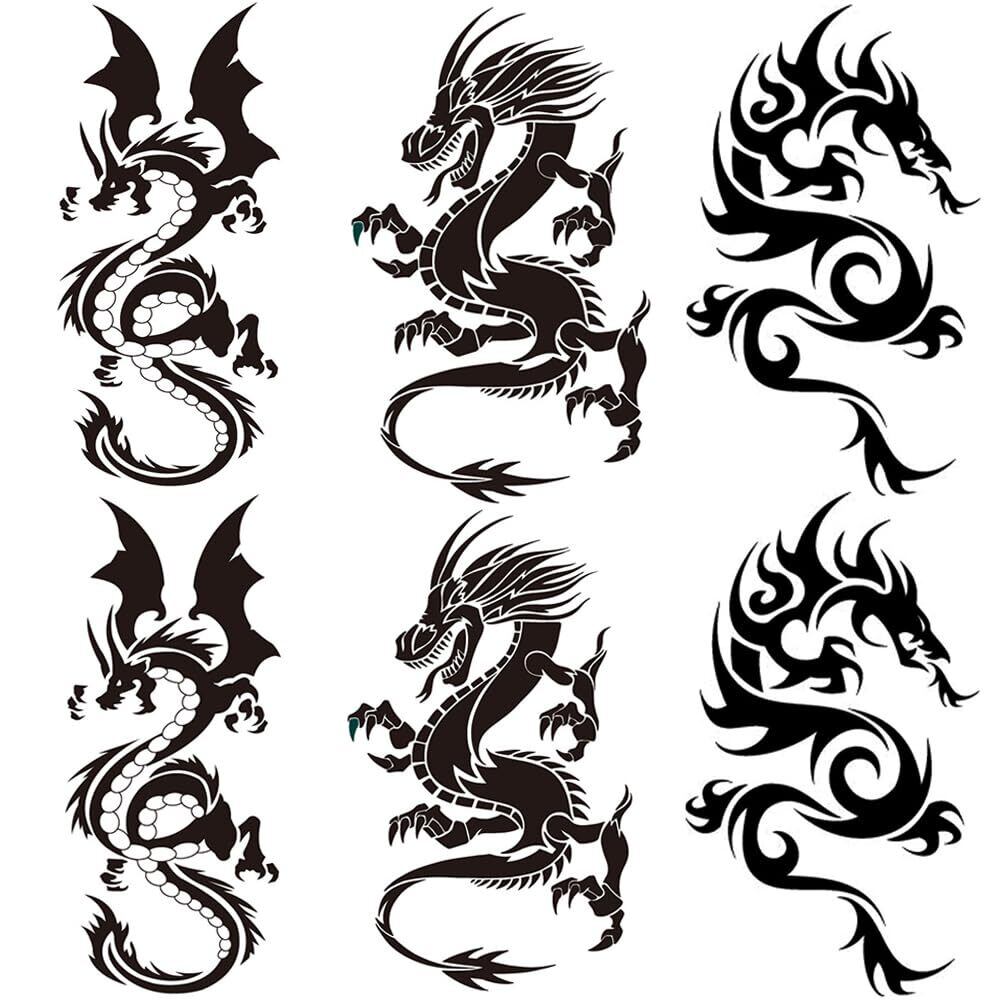 Yesallwas タトゥーシール 龍 ミニサイズ 6枚セット 黒 竜 飛竜入れ墨シール タトゥーステッカー ボディー刺青シール 長持ち 防水 子供 メンズ 腕、足、体、胸、肩、背中に簡単貼る dragon tattoo 約6cm×10.5cm (A)
