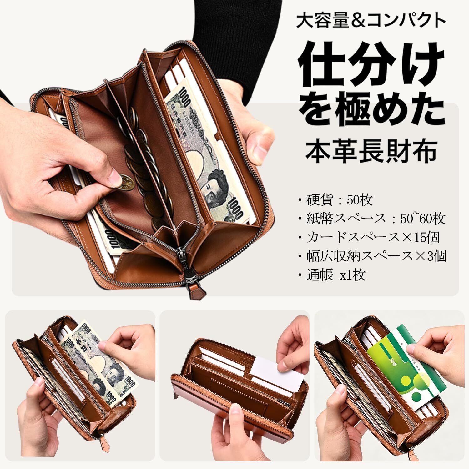 【一望できる大容量設計】出し入れしやすい蛇腹構造で、紙幣を種類ごとに整理可能。カードポケット15枚、フリーポケット2か所、札入れ2か所を備えています。L字ファスナーの小銭入れは大きく開き、内部は2室構造で硬貨をすっきり整理できます。通帳も入るサイズ感ながら、約219gの軽量設計を実現しました。外側にはICカード対応ポケットも搭載し、改札通過もスムーズ。見た目以上の収納力で、日常使いから通勤まで活躍する男女兼用のメンズ財布です。