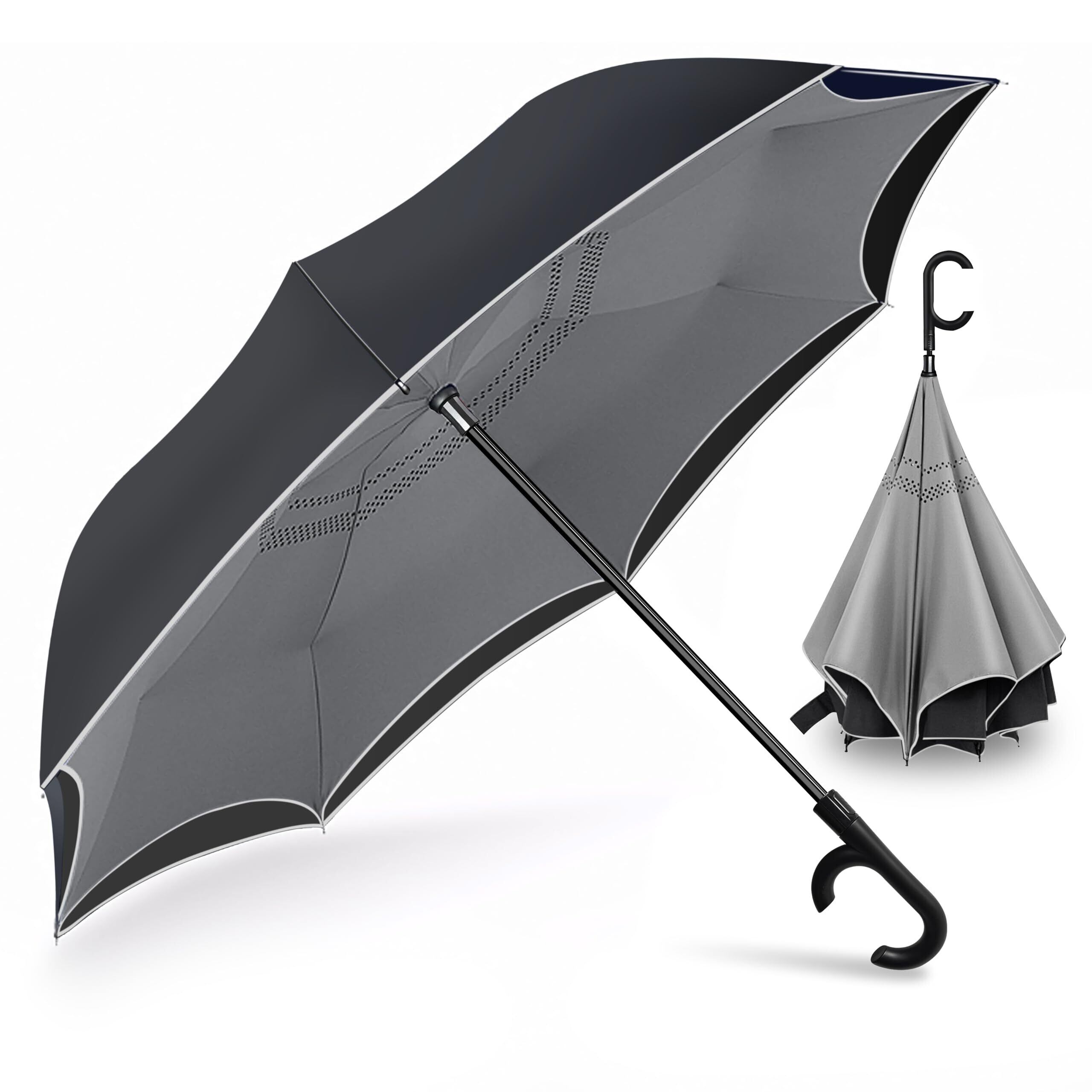 【2022最新】Dlin 逆折り傘 逆さ傘 メンズ 逆転傘 風に強い傘 大きい 熱中症対策 手離れC型手元 自動閉じる 高強度カーボンファイバー 撥水加工 傘布内外2枚 強い傘 梅雨季節 台風対応 耐風傘 自立式 台風対応 梅雨季節