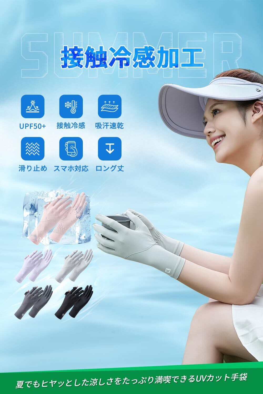手袋のUVカットは98%以上,暑い夏の時期で紫外線対策から日灼けしやすい肌を守ることが重要になります。