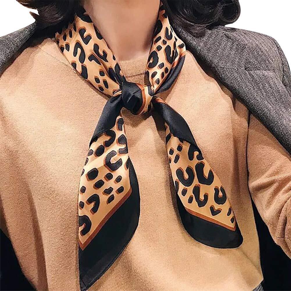 【在庫処分】スカーフ シルク レディース 髪飾り 絹 ヒョウ柄 事務 薄い 巻き方 リボン ヘアバンド