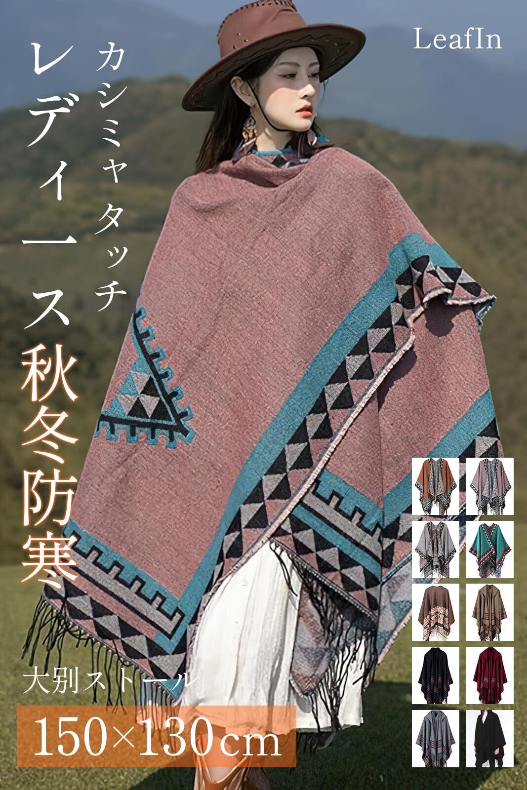 【2022最新】レディース ポンチョ 春 マフラー 大判 ストール エスニック柄 フリンジ ショール ロング 羽織り ひざ掛け ファッション 室内 オフィス 防寒 冬