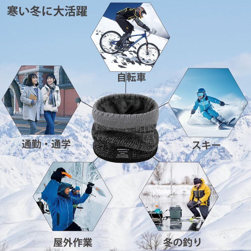 【極暖ダブル構造】 外側の高密度ニットが冷気をシャットアウトし、内側のモコふわフリースが体温を逃しません!二層が織りなす相乗効果で、首元を隙間なく包み込み、厳しい寒さの中でも「ぽかぽか」を持続します。