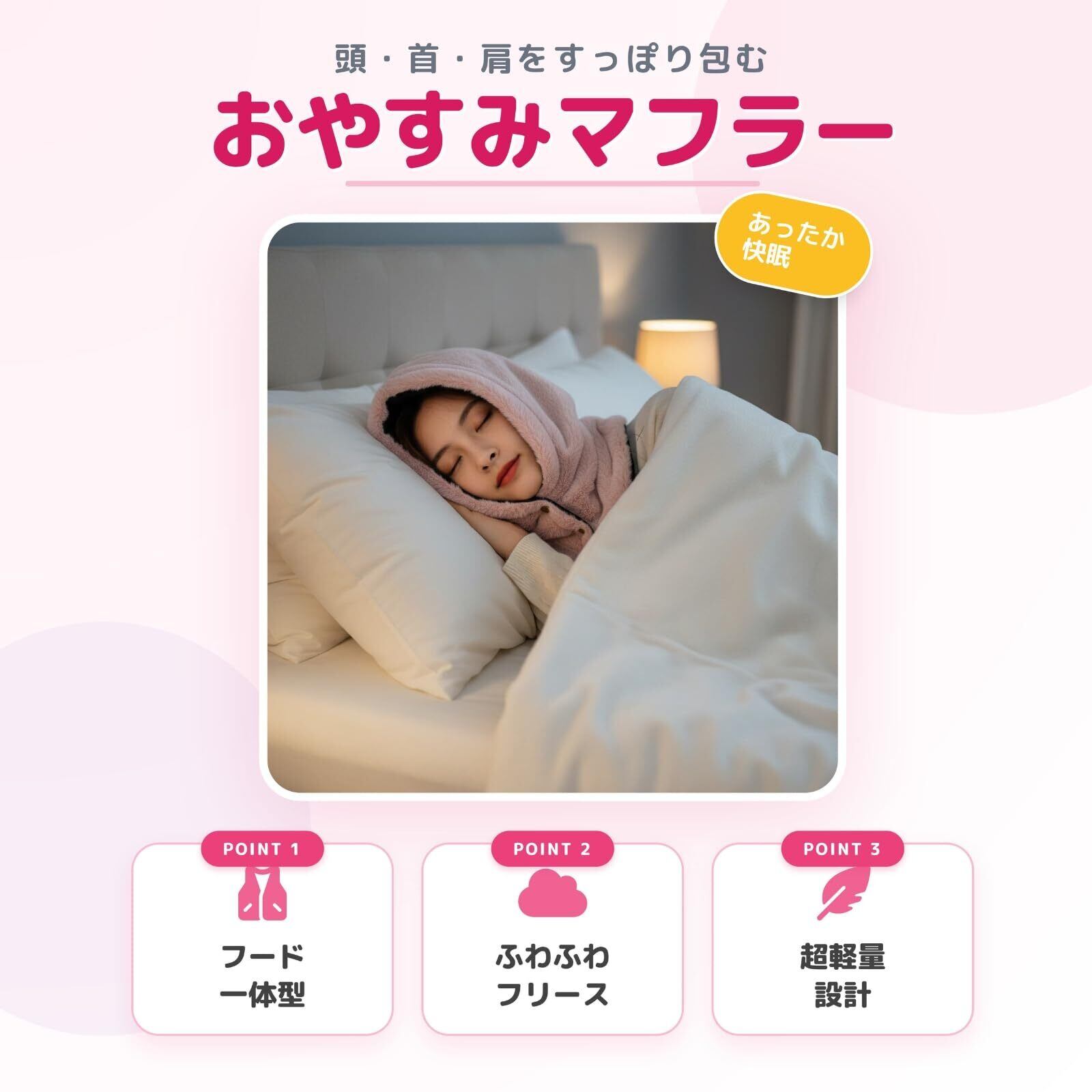 おやすみ ネックウォーマー フード付き おやすみマフラー 寝る時用 就寝 首温めグッズ レディース B