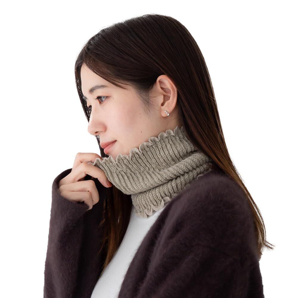 【締めつけない、ゆったりフィット】 よく伸びるリブ編みで、苦しくなりにくい設計。首にやさしくフィットしながらも圧迫感がなく、室内外問わず快適に使用できます。仕事や家事の合間、就寝中の冷え対策にもおすすめ。