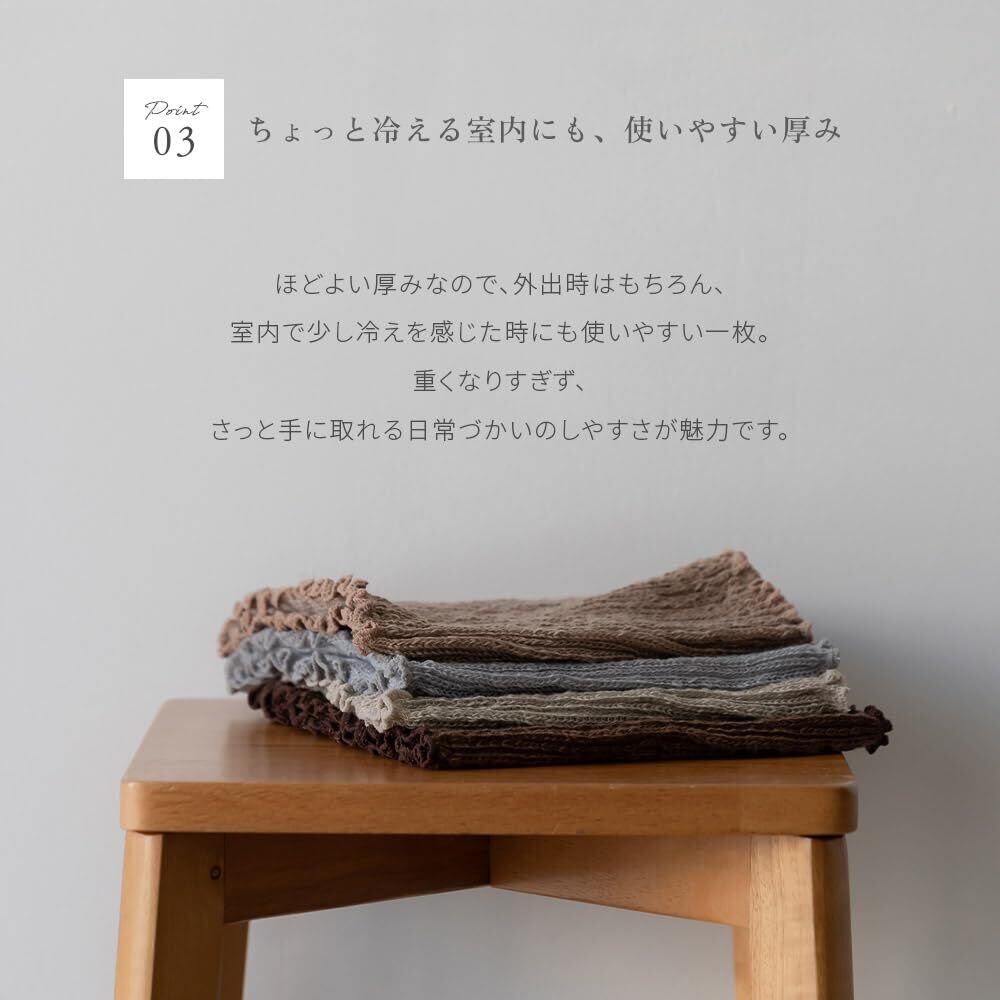 【ふわっと軽く、ずっと暖かい】 昔ながらの編み機でゆっくり編み立てた生地は、空気を含んだような軽さとやわらかさが特長。首元をやさしく包み込み、冷たい冬の風からしっかり守ります。長時間つけても疲れにくい快適な着け心地です。