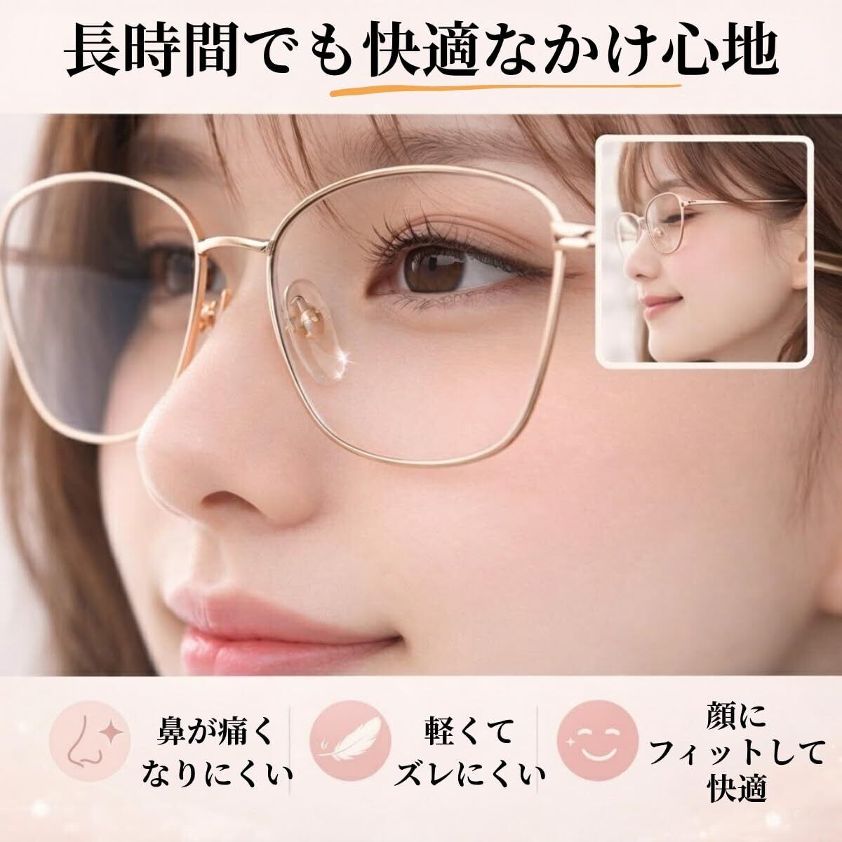 【かけるだけで小顔見え】 大きめレンズがフェイスラインをさりげなくカバーし、小顔効果を演出。丸顔・エラ張りが気になる方にもおすすめの小顔メガネです。いつもの服装にプラスするだけで、印象がグッと垢抜けます。