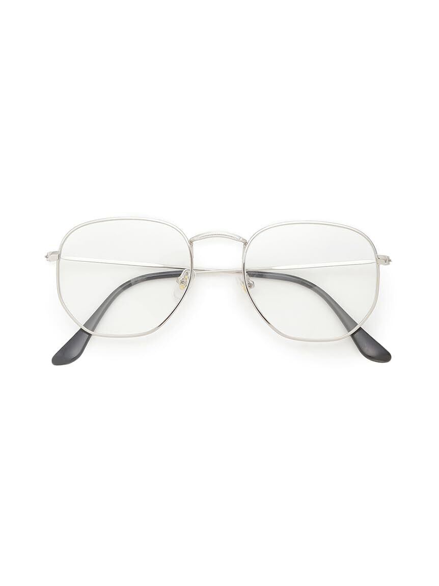 【シンプルなメタルフレームはまさにトレンドの形。知的な印象のダテメガネ】