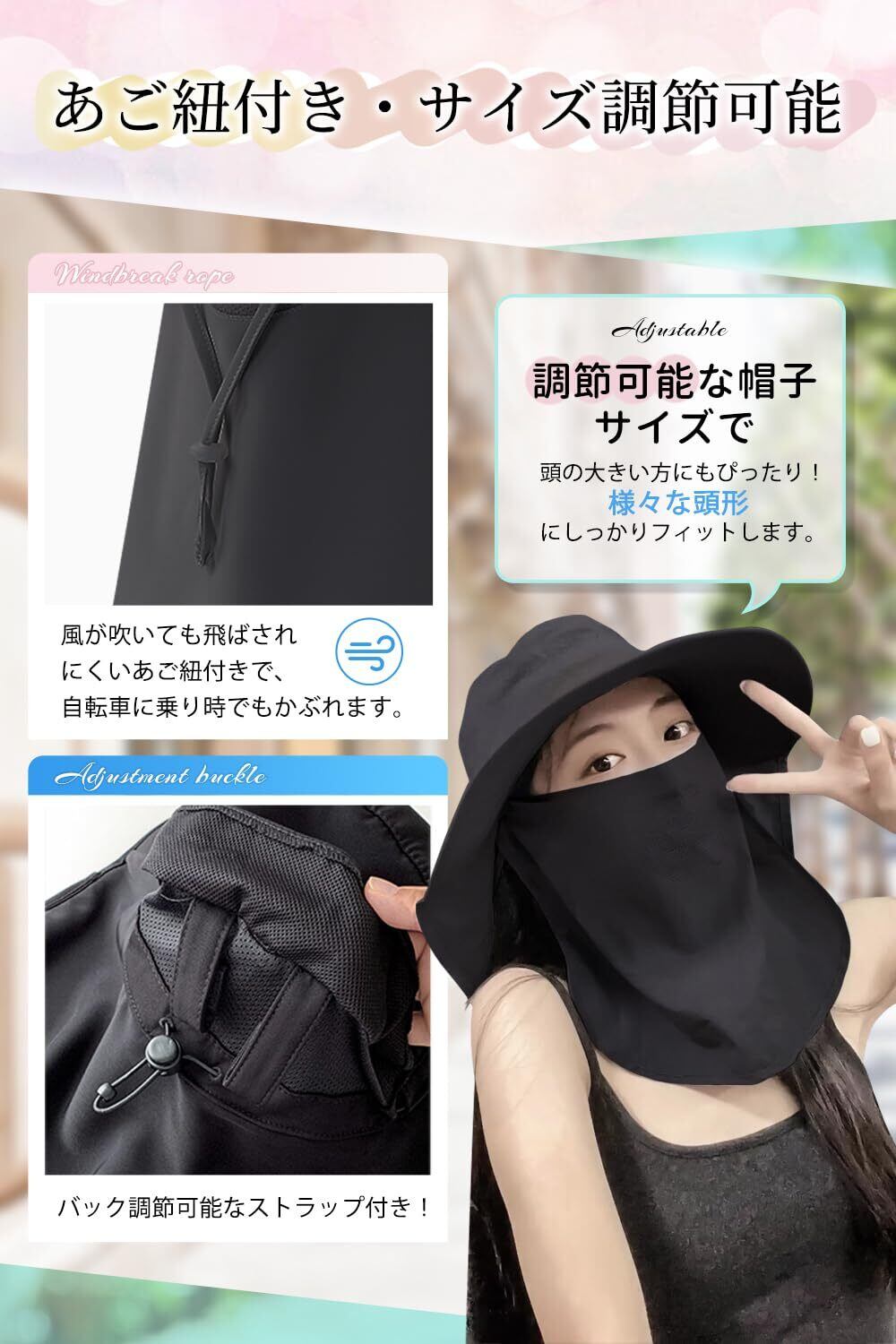 【3WAY着用可能】帽子、フェイスカバー2パーツに分かれている。首後ろは2つに分かれてロールアップできるため、ローポニー結びでも邪魔になりません。フル装着時は、正面・上面・側面・後面など、あらゆる角度からの紫外線をカット。夏の強い紫外線対策に、一つ持っておきたい便利アイテムです!
