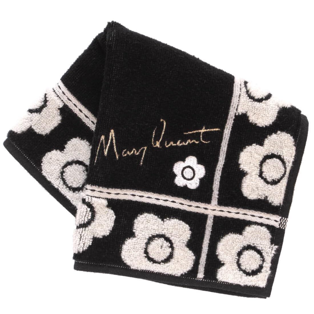 【新春セール】MARY QUANT (マリークヮント) タオルハンカチ (ブラック / 約25cm) 格子柄 レディース タオル ハンドタオル 000284-0007
